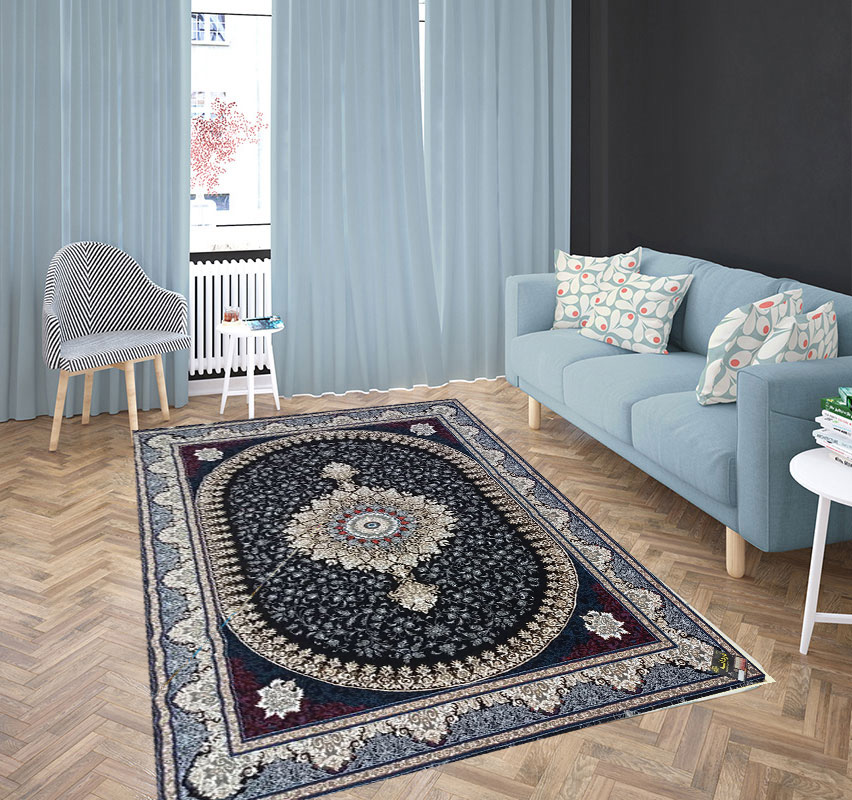 فرش ماشینی ارزان قیمت نقشه مهبد زمینه سرمه ای