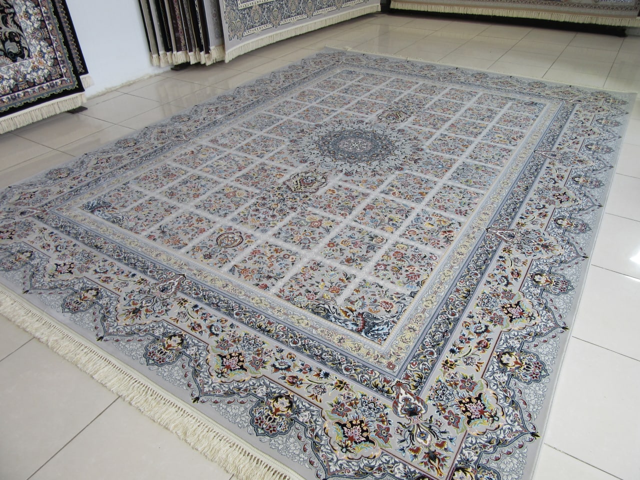 فرش ماشینی کاشان 1000شانه کد 4009 زمینه نقره ای