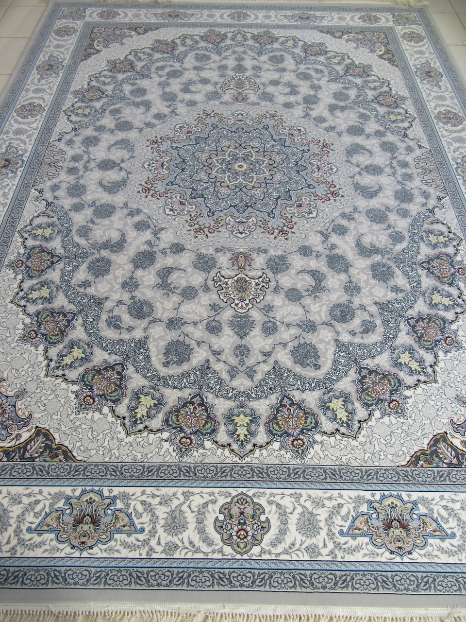 فرش ماشینی کاشان 1000شانه کد 4003 زمینه نقره ای