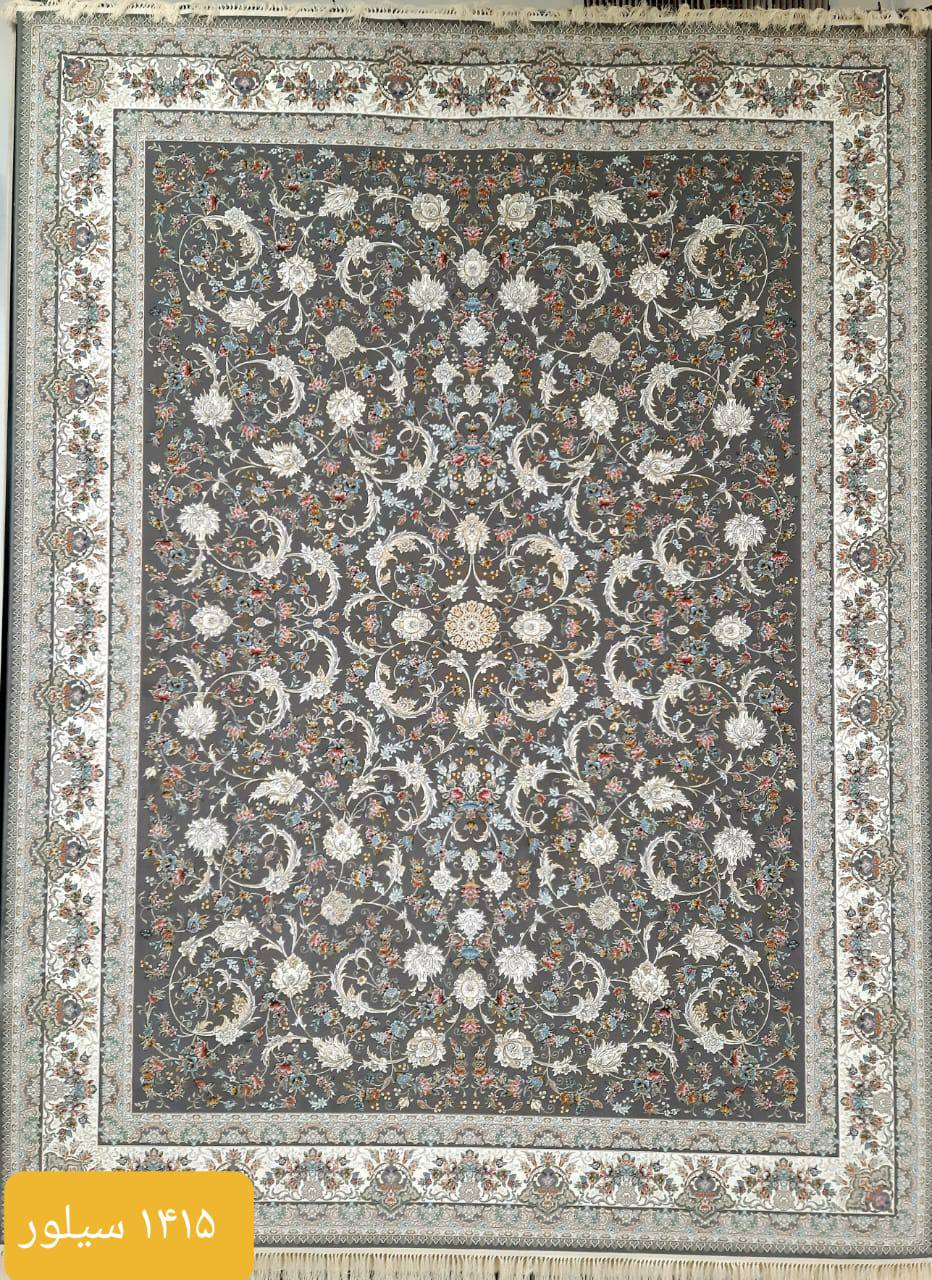 فرش ماشینی کاشان 1000شانه کد 1415 زمینه سیلور