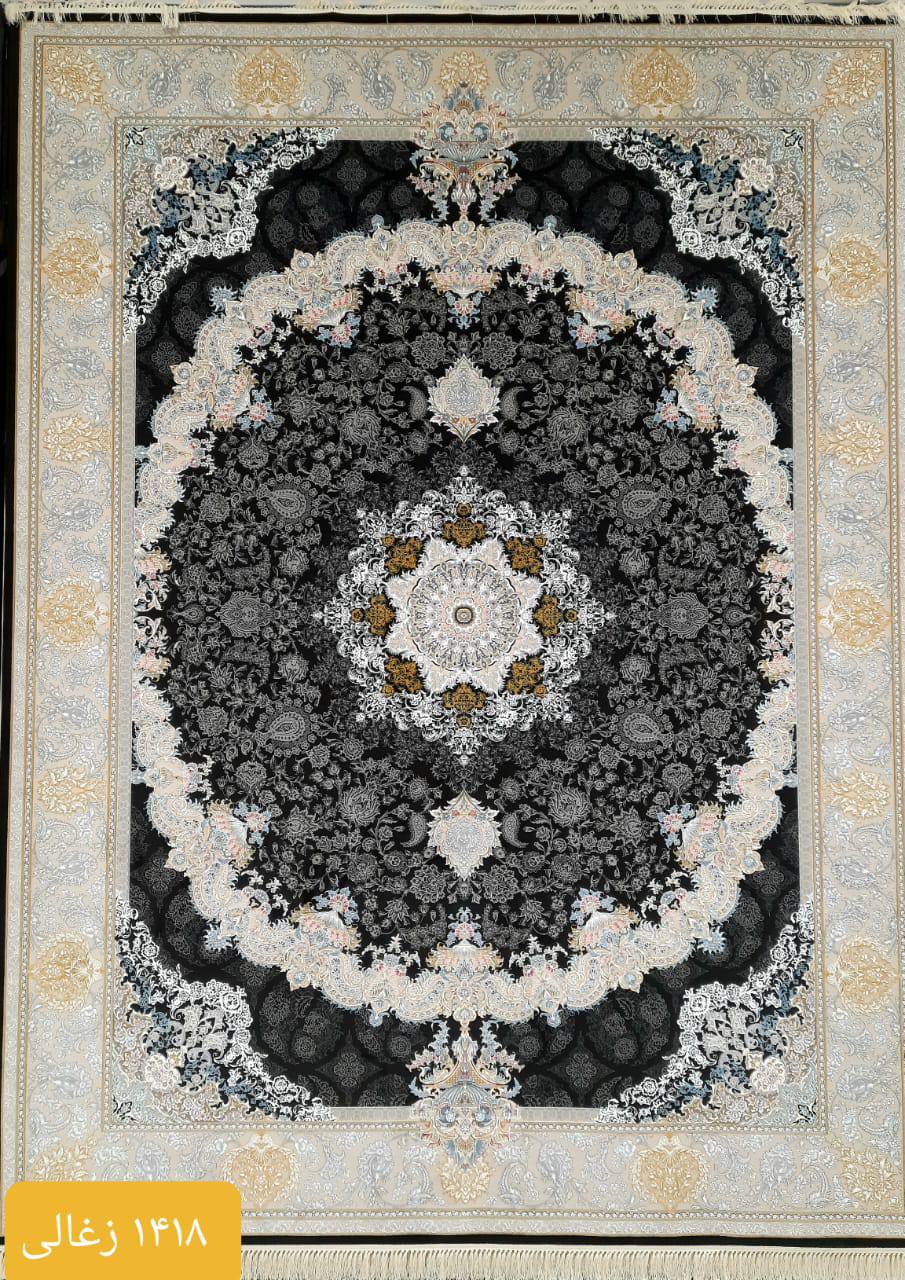 فرش ماشینی کاشان 1000شانه کد1418 زمینه ذغالی