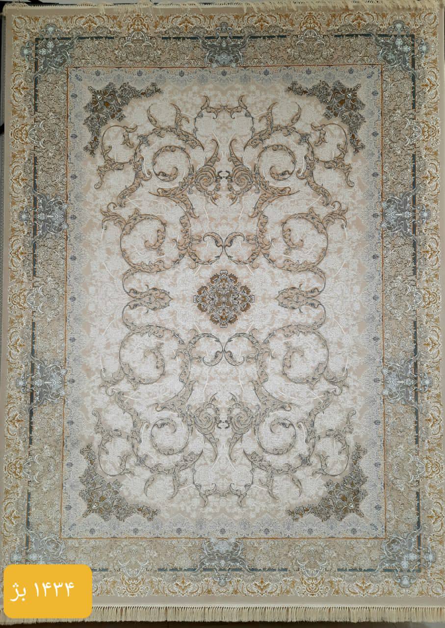 فرش ماشینی کاشان 1000شانه کد 1434زمینه بژ