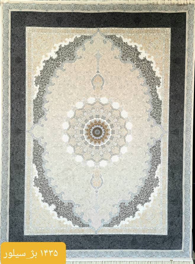 فرش ماشینی کاشان 1000شانه کد1435 زمینه بژ حاشیه سیلور