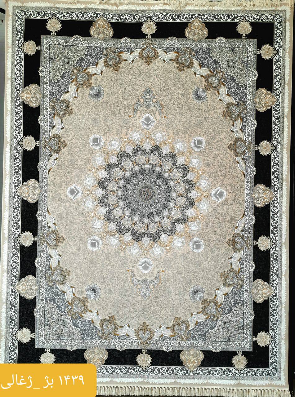 فرش ماشینی کاشان 1000شانه کد1339 زمینه بژ حاشیه ذغالی