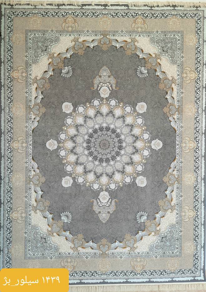 فرش ماشینی کاشان 1000شانه کد1439 زمینه سیلور حاشیه بژ