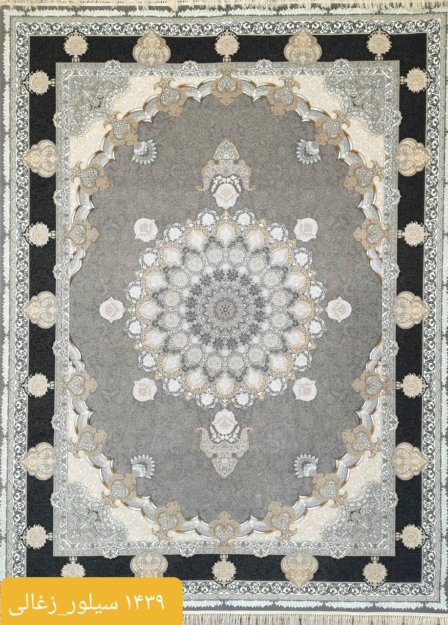 فرش ماشینی کاشان 1000شانه کد 1439زمینه سیلور حاشیه زغالی