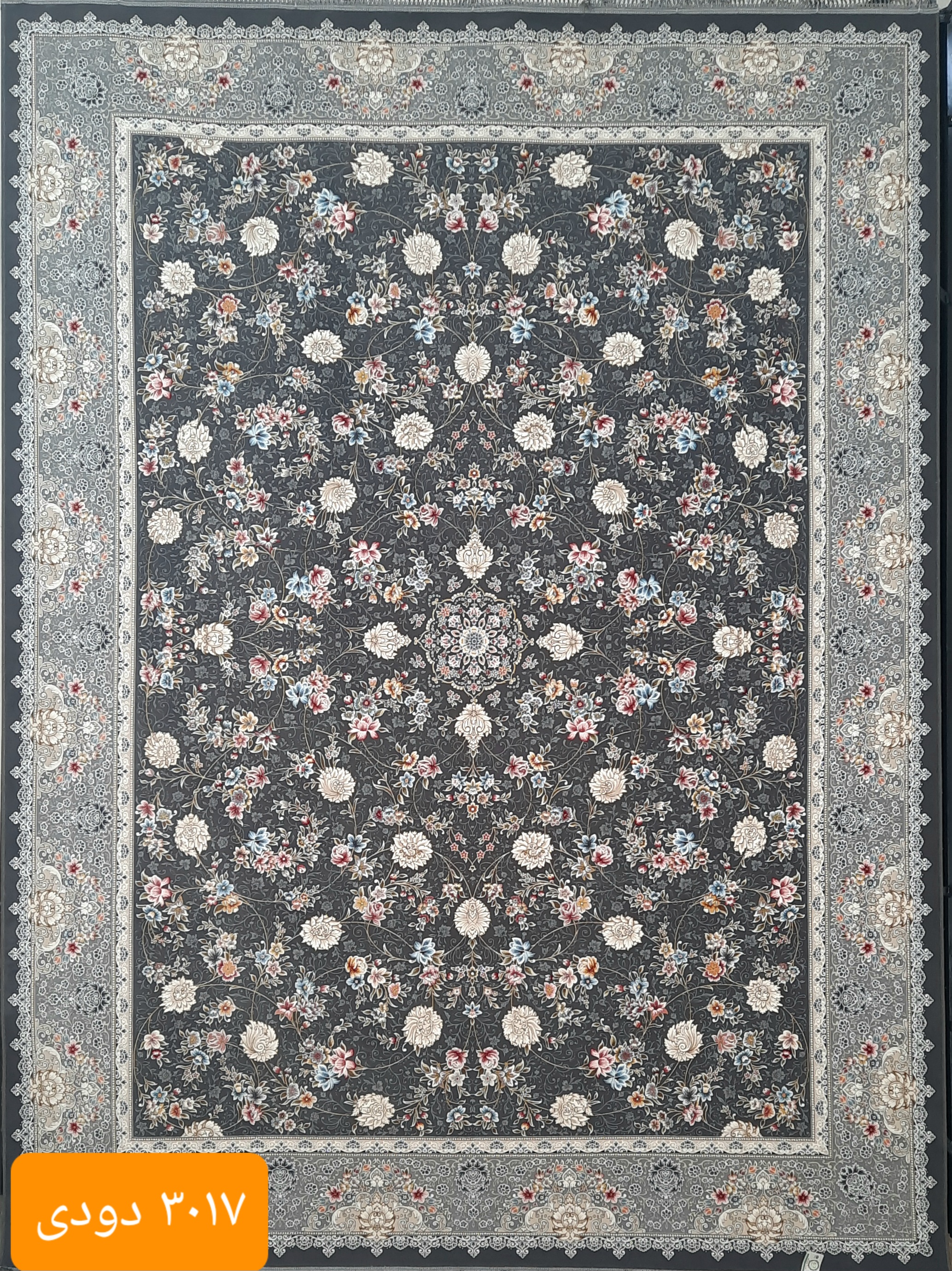 فرش ماشینی کاشان 1200شانه درجه یک زمینه دودی کد3017
