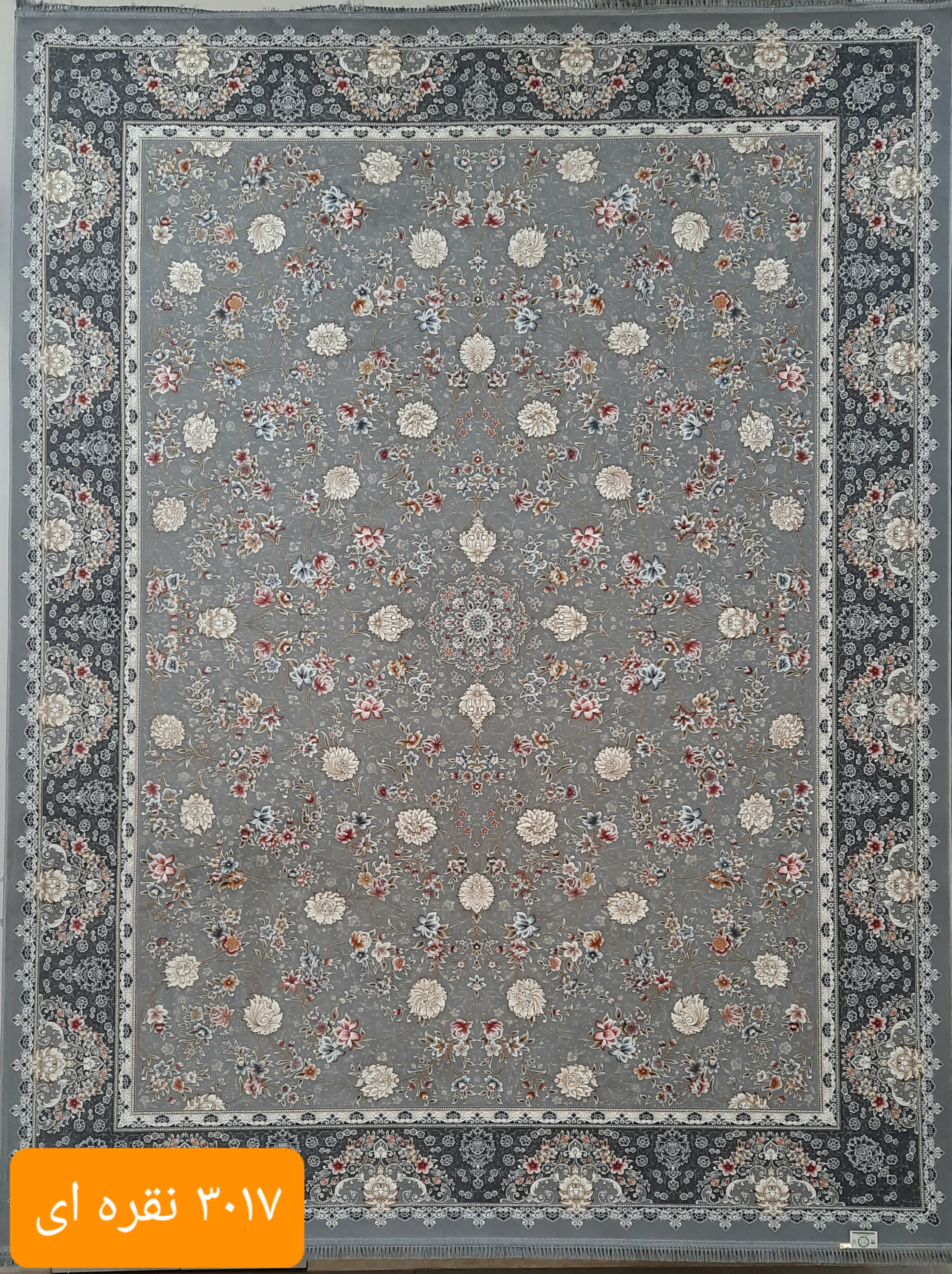 فرش ماشینی کاشان 1200شانه درجه یک زمینه نقره ای کد3017