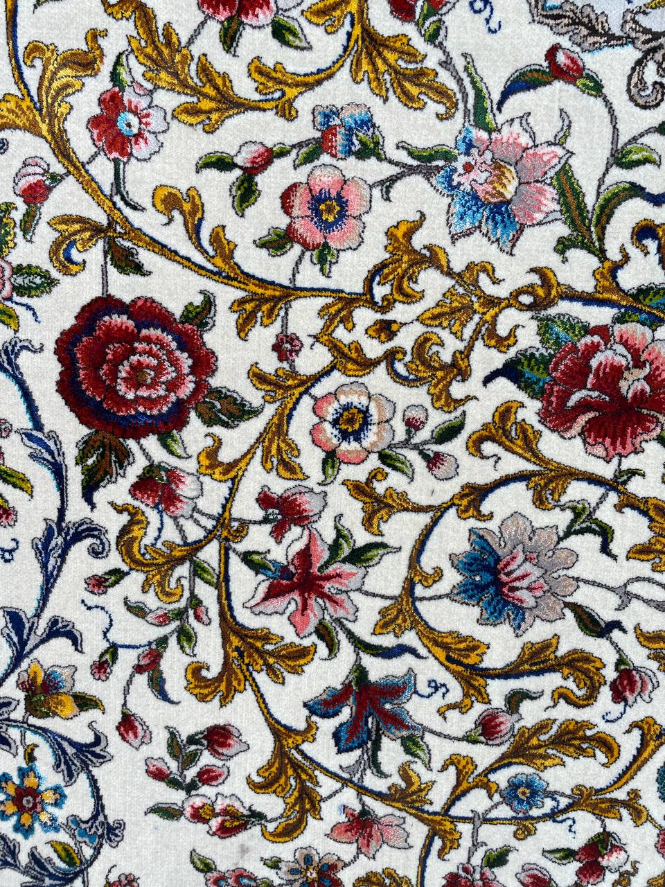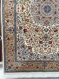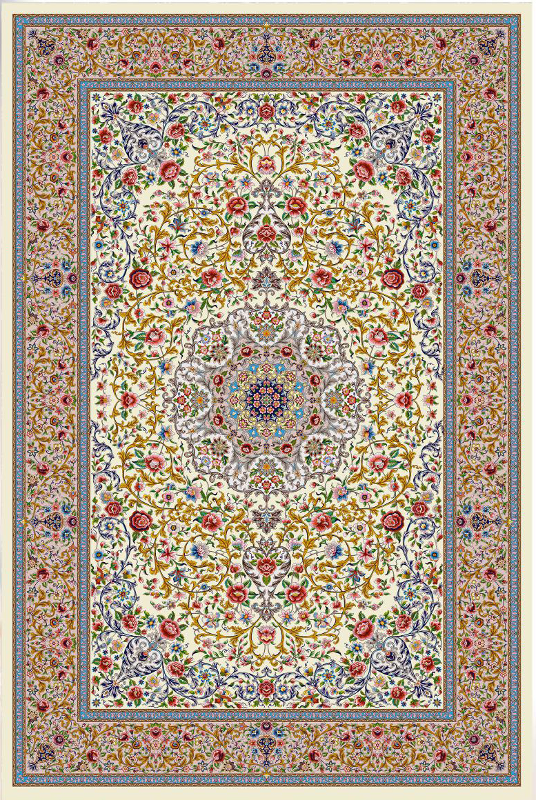 فرش ماشینی پشم ابریشم 1200 شانه زمینه کرم موزی کد3211