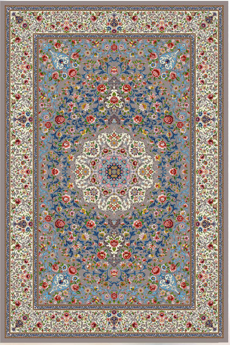 فرش ماشینی پشم ابریشم 1200 شانه زمینه خاکستری کد3211