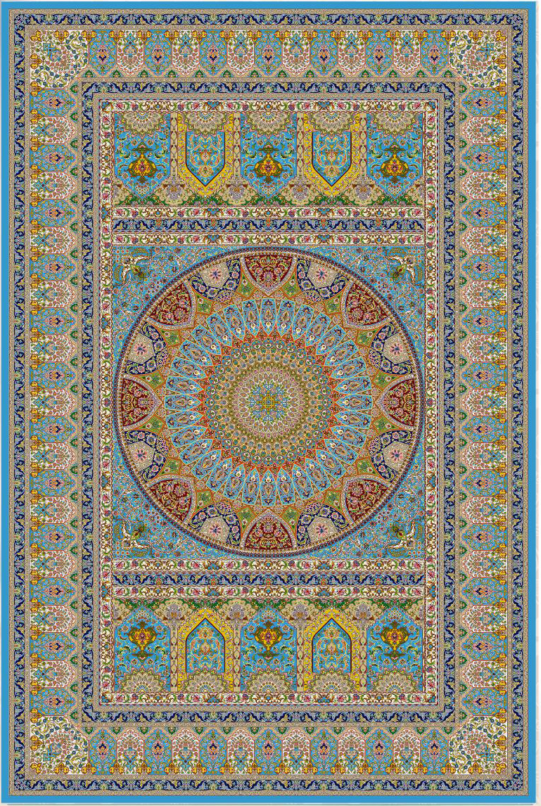 فرش ماشینی پشم ابریشم 1200 شانه زمینه آبی کد3214