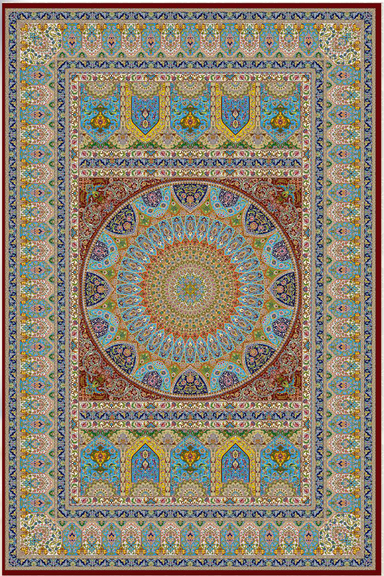 فرش ماشینی پشم ابریشم 1200 شانه زمینه زرشکی کد3214