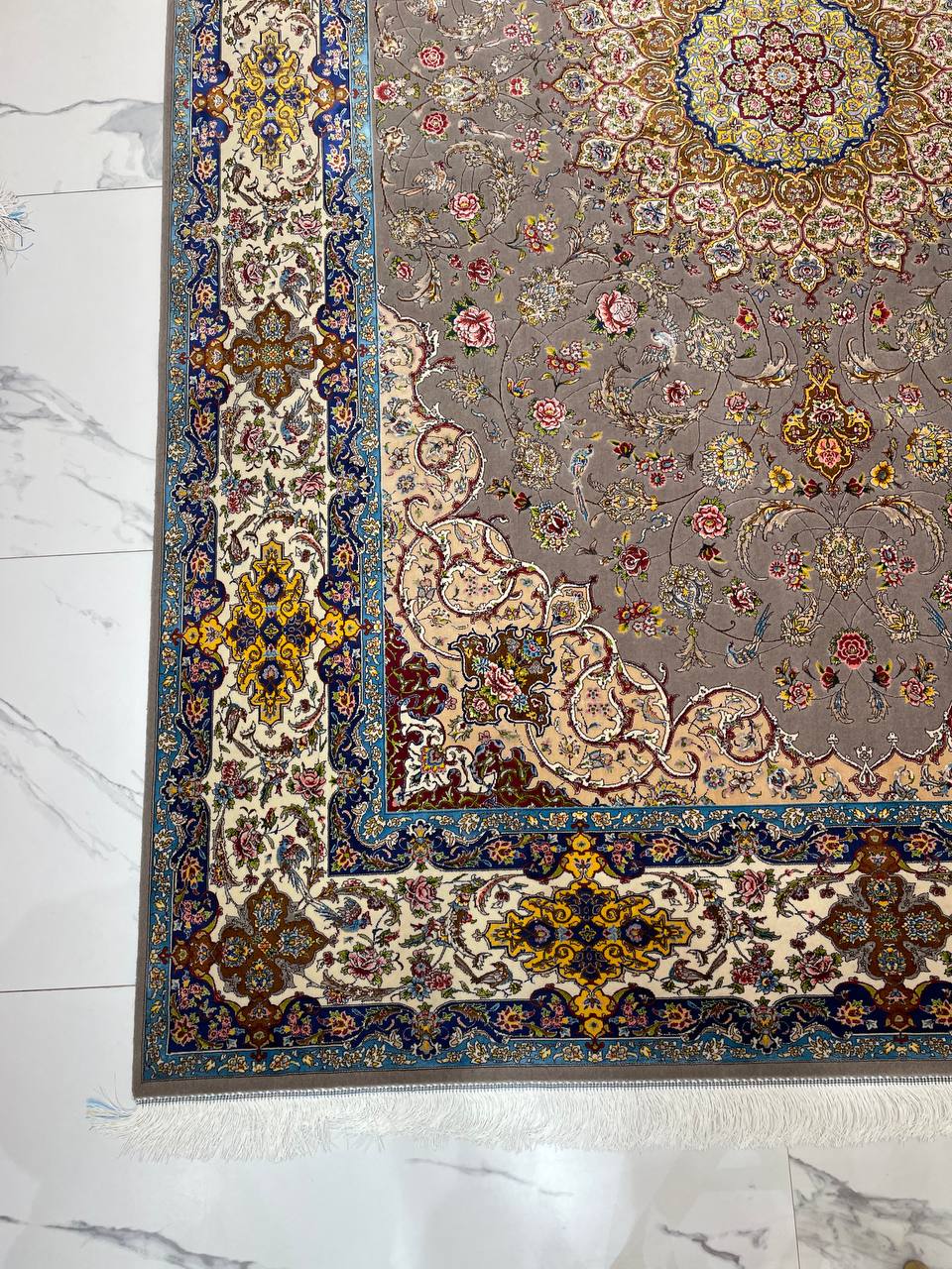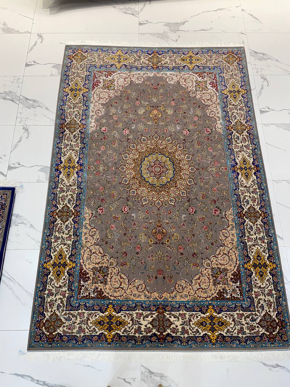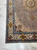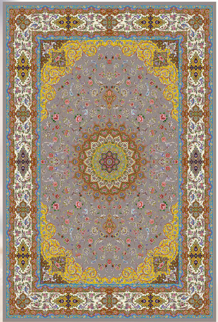 فرش ماشینی پشم ابریشم 1200 شانه زمینه خاکستری کد3220