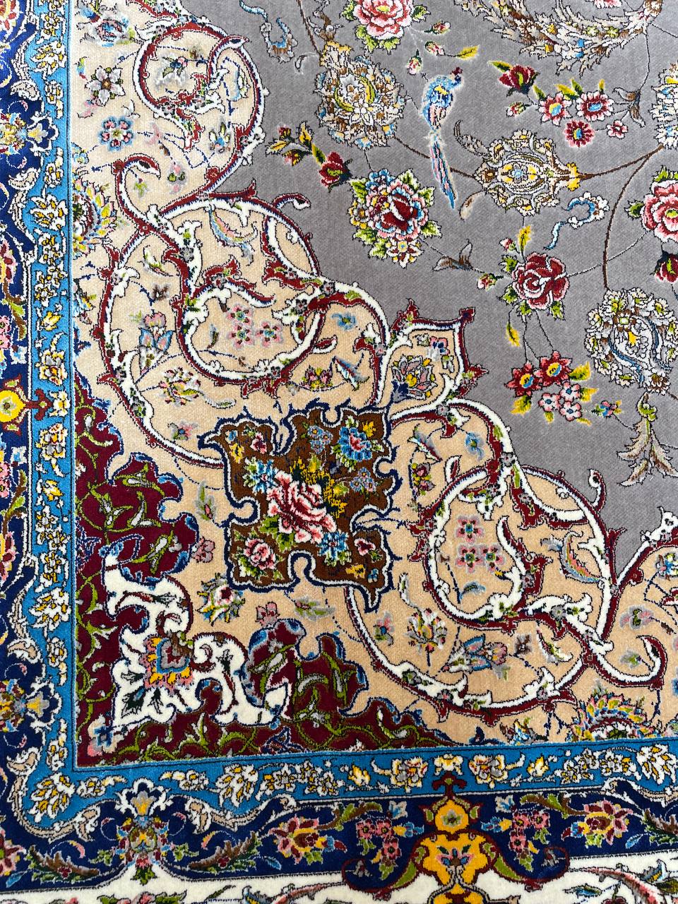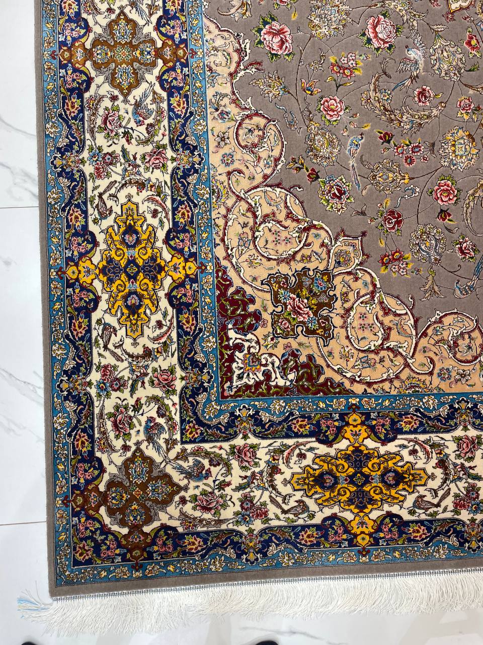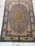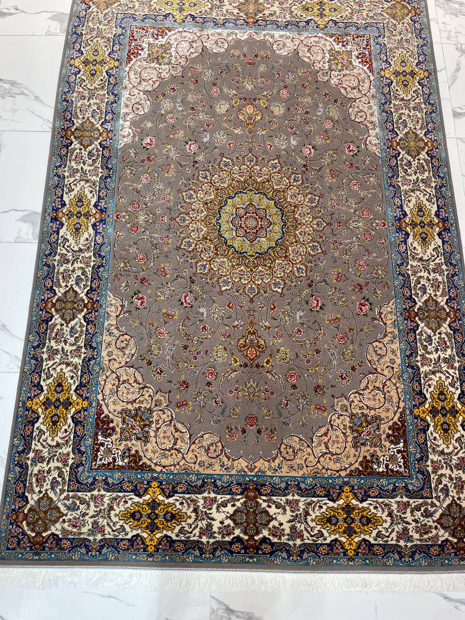 فرش ماشینی پشم ابریشم 1200 شانه زمینه خاکستری کد3220