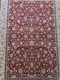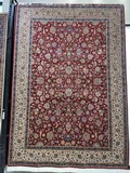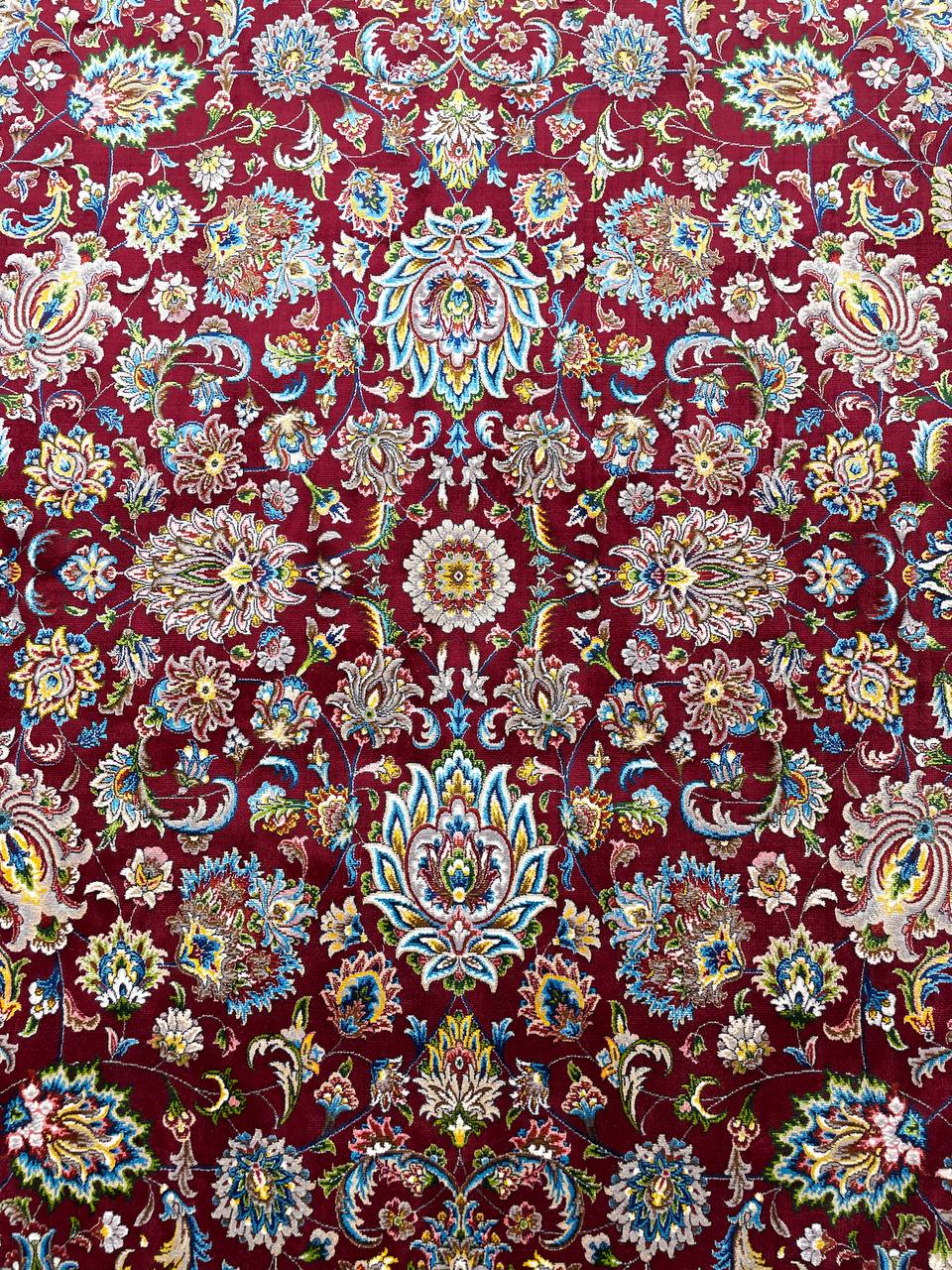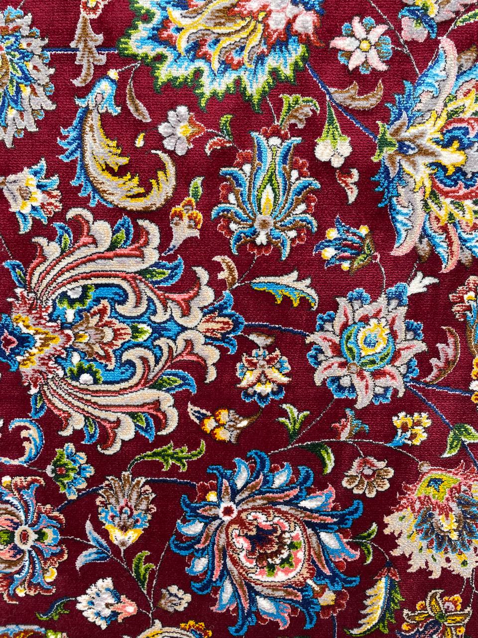 فرش ماشینی پشم ابریشم 1200 شانه زمینه زرشکی کد3221