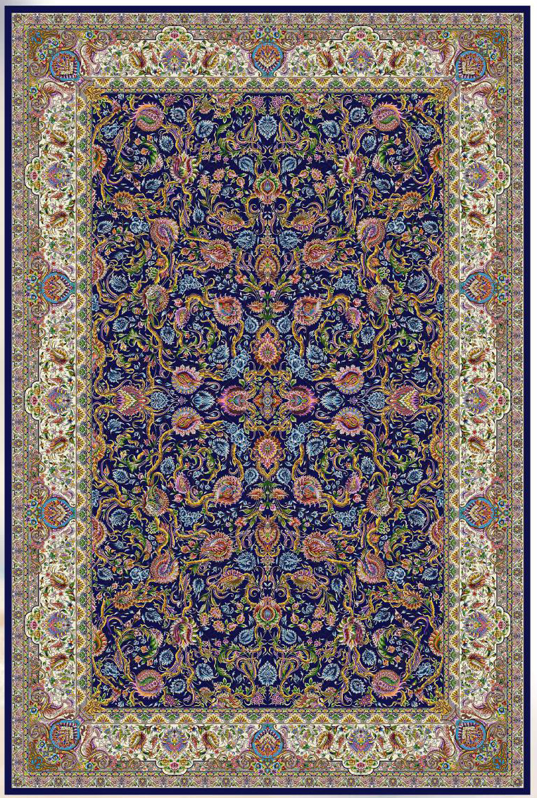 فرش ماشینی پشم ابریشم 1200 شانه زمینه آبی کاربنی کد3223