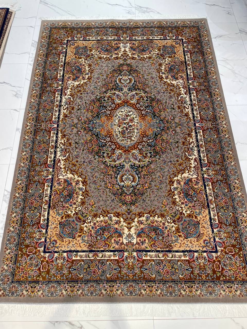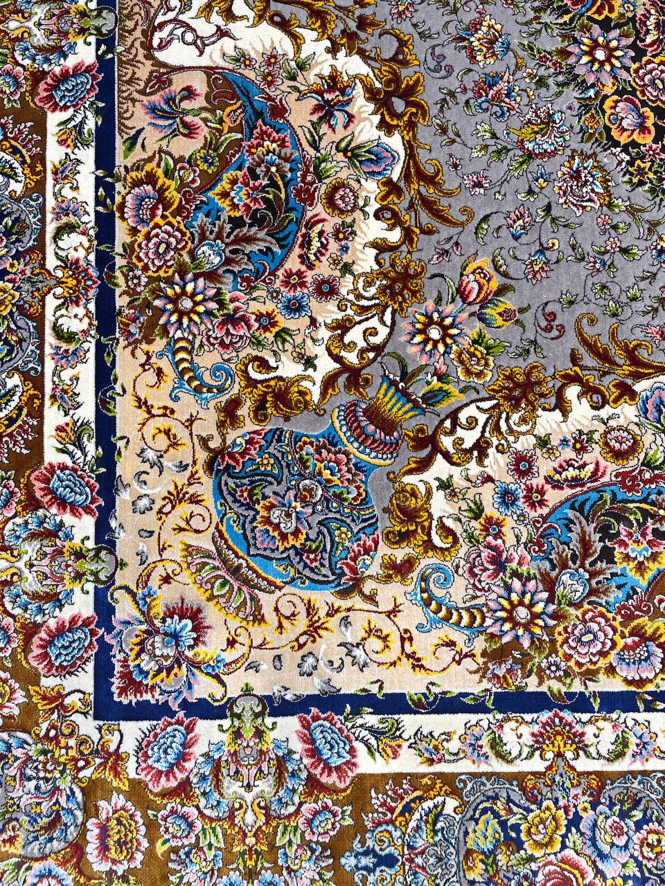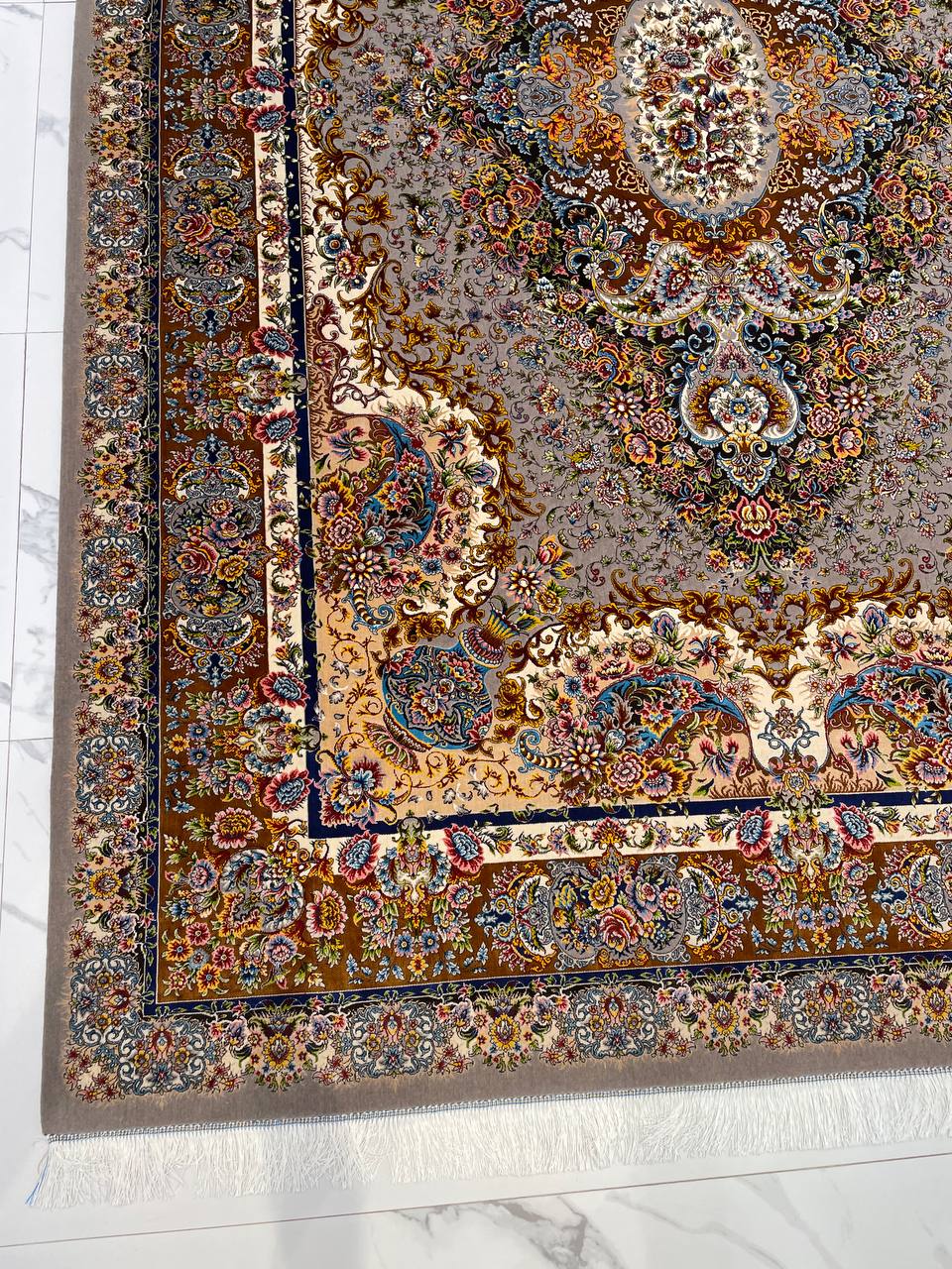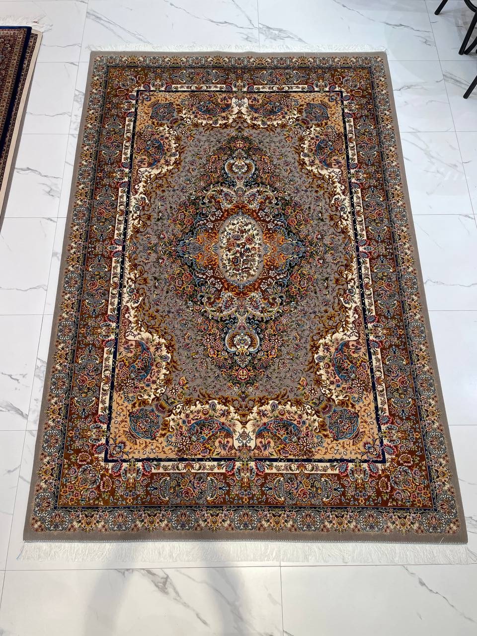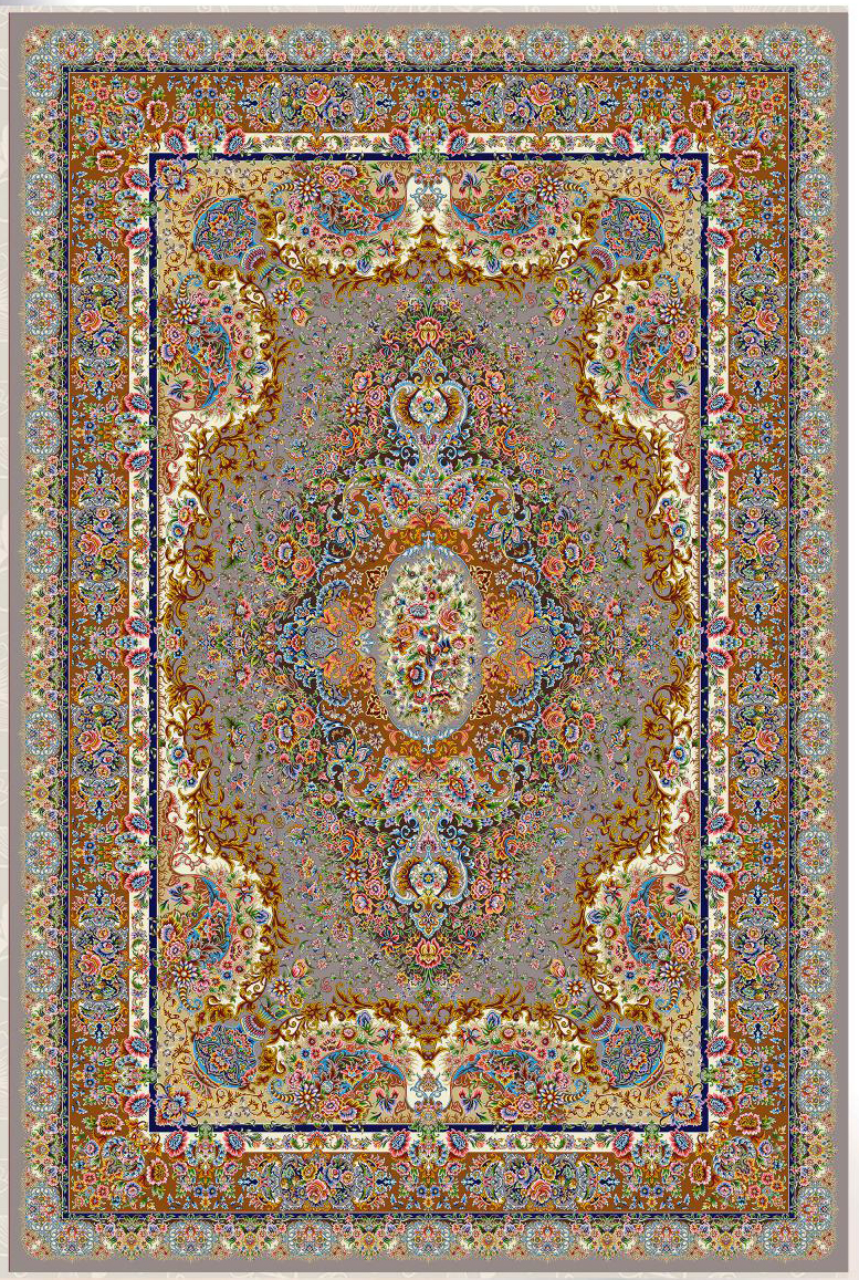 فرش ماشینی پشم ابریشم 1200 شانه زمینه خاکستری کد3224