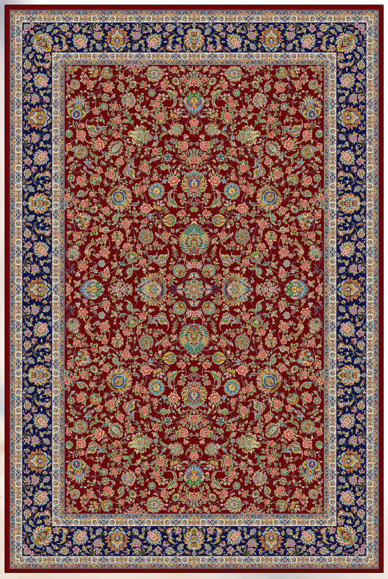 فرش ماشینی پشم ابریشم 1200 شانه زمینه زرشکی کد3226