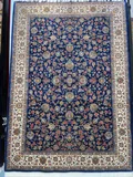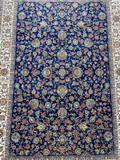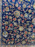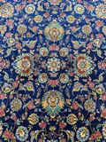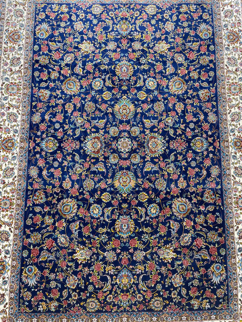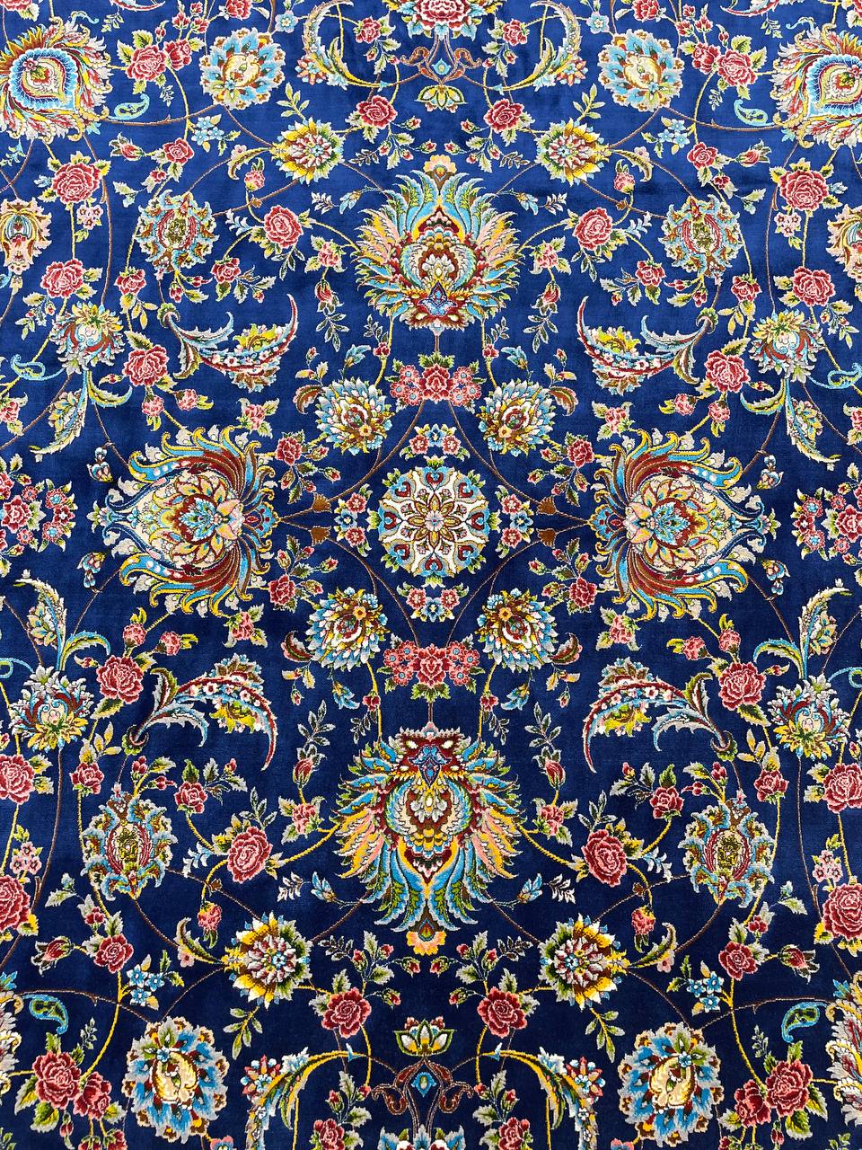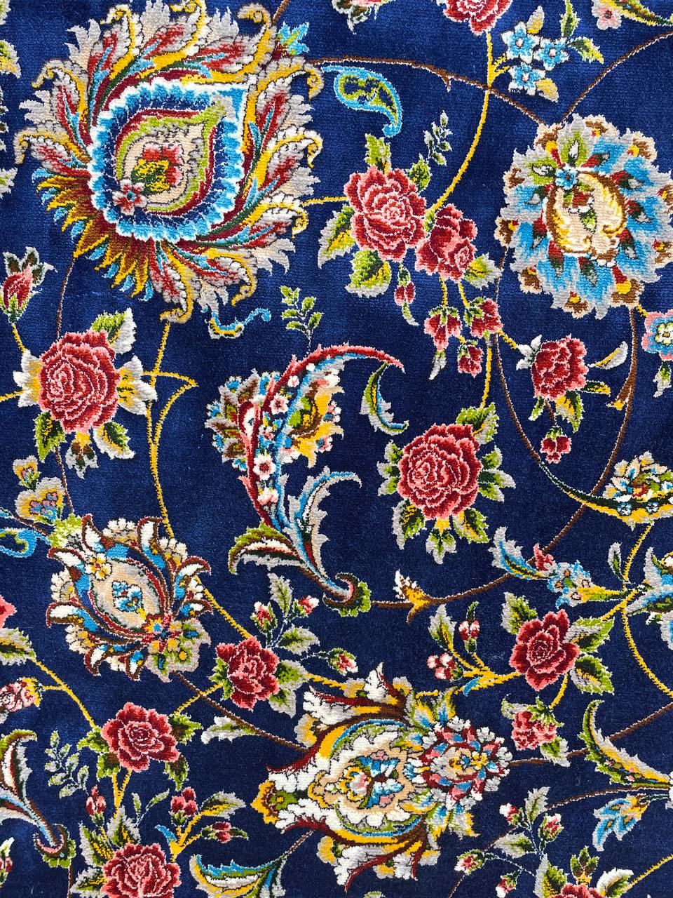 فرش ماشینی پشم ابریشم 1200 شانه زمینه آبی کاربنی کد3226