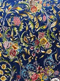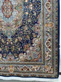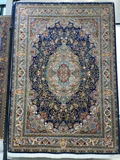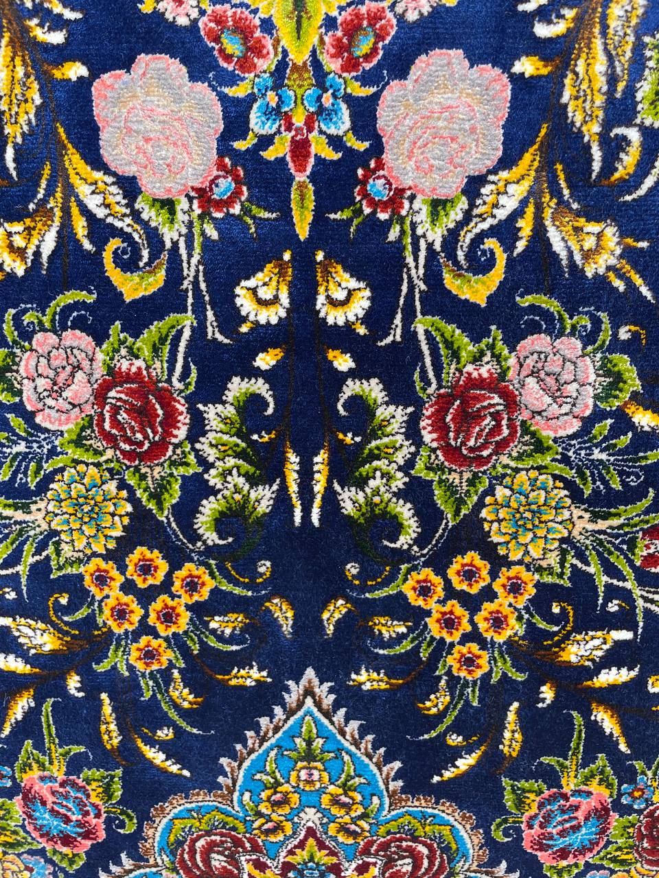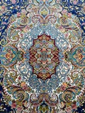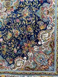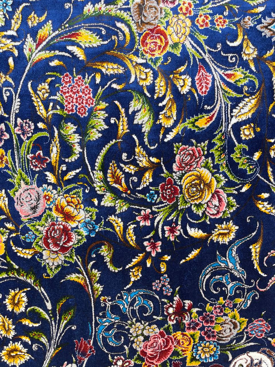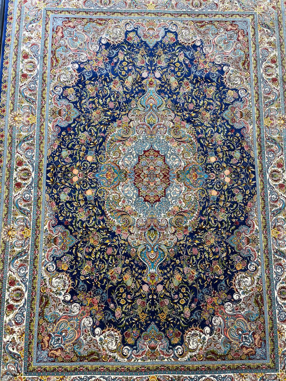 فرش ماشینی پشم ابریشم 1200 شانه زمینه آبی کاربنی کد3227
