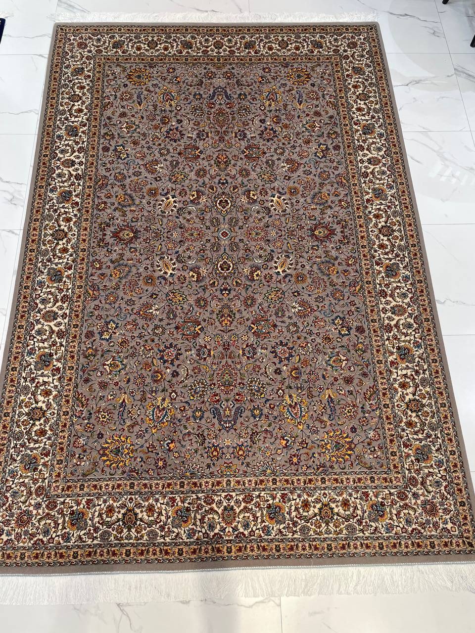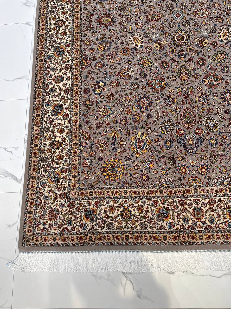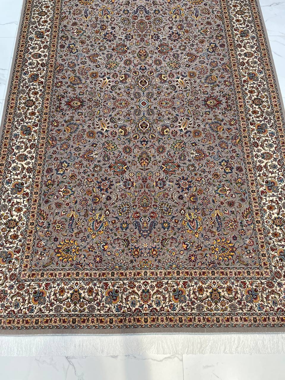 فرش ماشینی پشم ابریشم 1200 شانه زمینه خاکستری کد3221