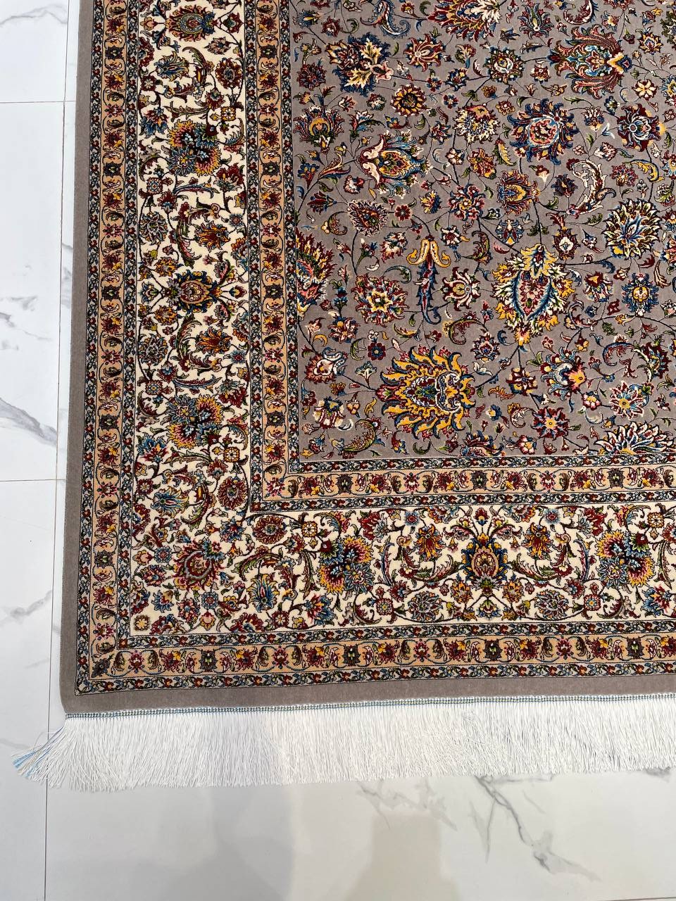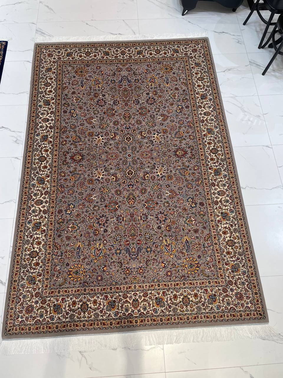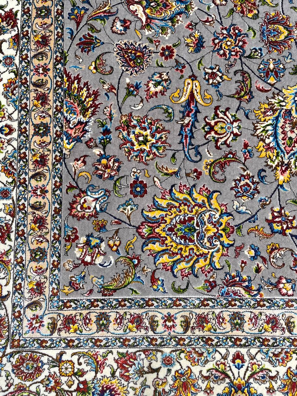 فرش ماشینی پشم ابریشم 1200 شانه زمینه خاکستری کد3221