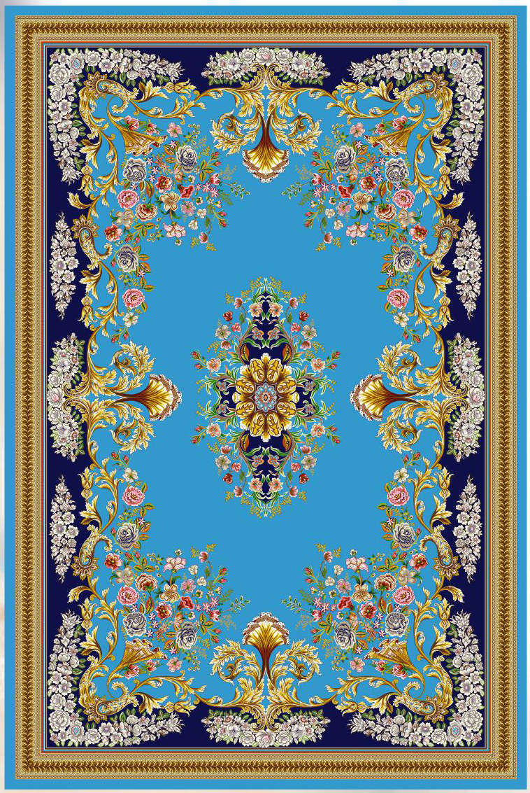 فرش ماشینی پشم ابریشم 1200 شانه زمینه آبی کد3228