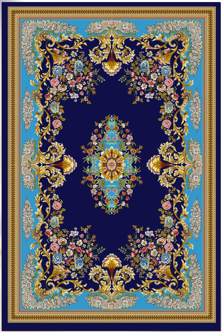 فرش ماشینی پشم ابریشم 1200 شانه زمینه آبی کاربنی کد3228