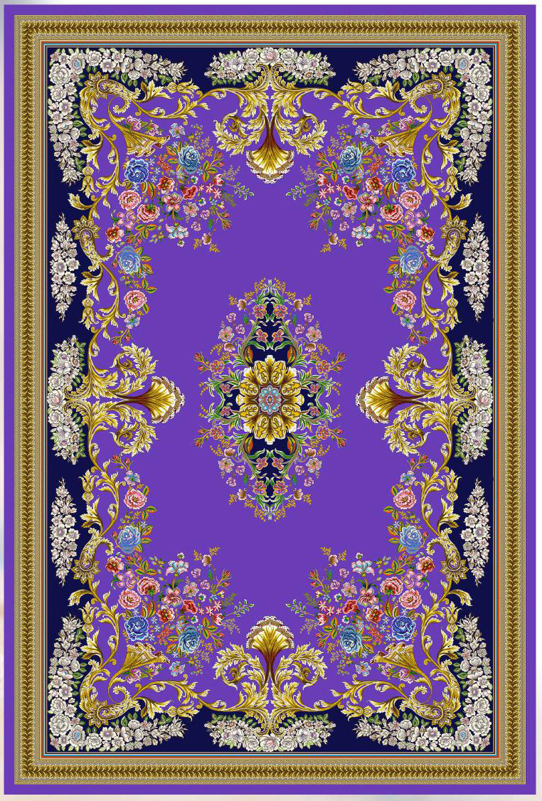 فرش ماشینی پشم ابریشم 1200 شانه زمینه بنفش کد3228