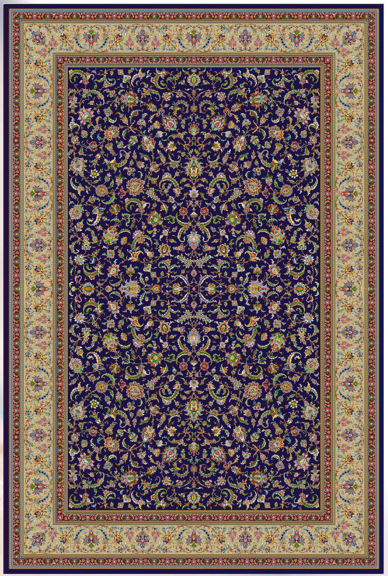 فرش ماشینی پشم ابریشم 1200 شانه زمینه آبی کاربنی کد3229
