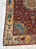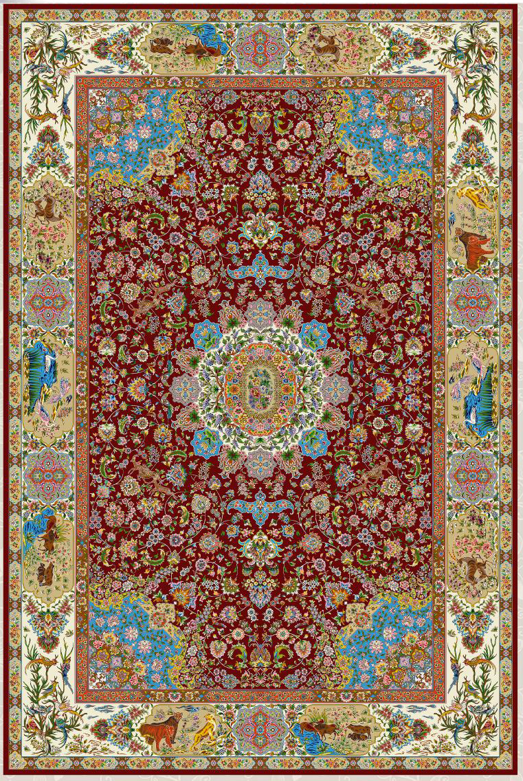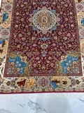فرش ماشینی پشم ابریشم 1200 شانه زمینه زرشکی کد3222