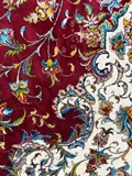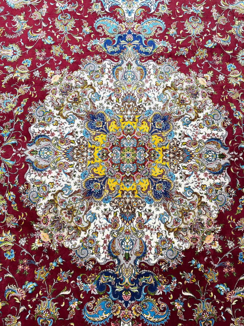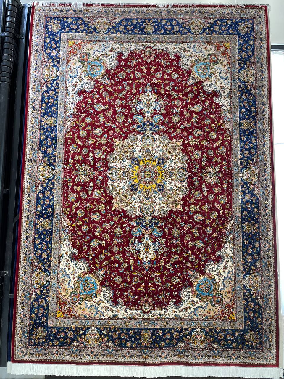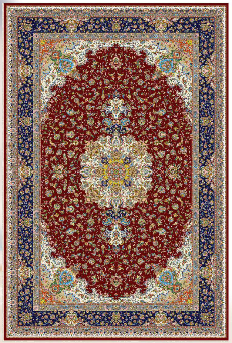 فرش ماشینی پشم ابریشم 1200 شانه زمینه زرشکی کد3230