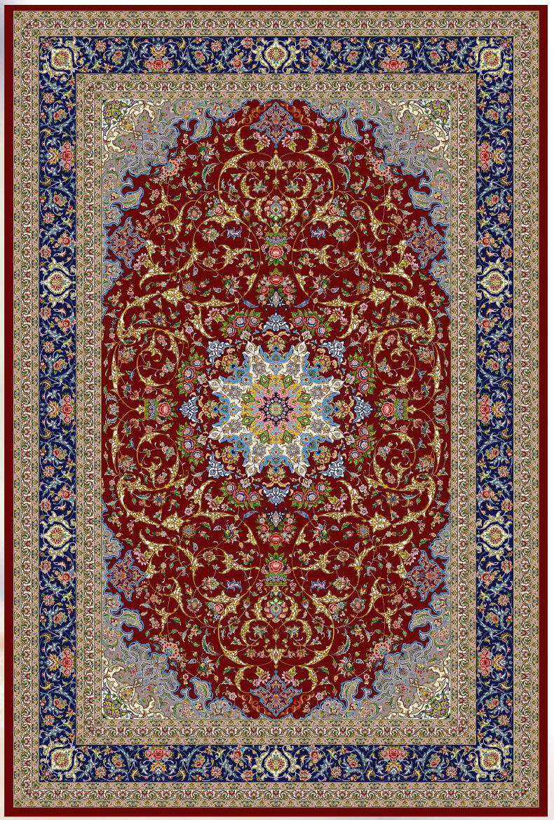 فرش ماشینی پشم ابریشم 1200 شانه زمینه زرشکی کد3231