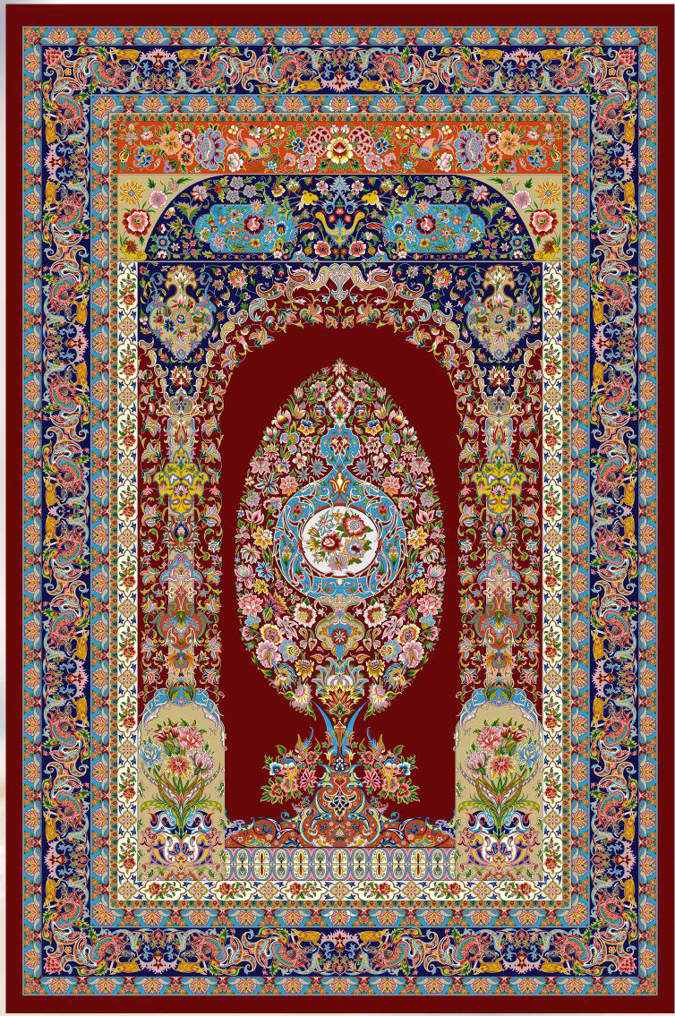 فرش ماشینی پشم ابریشم 1200 شانه زمینه زرشکی کد3236