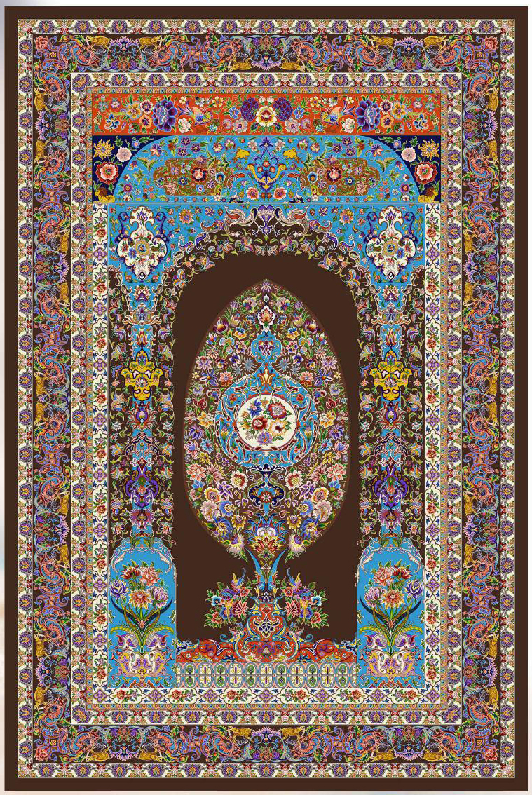 فرش ماشینی پشم ابریشم 1200 شانه زمینه قهوه ای کد3236