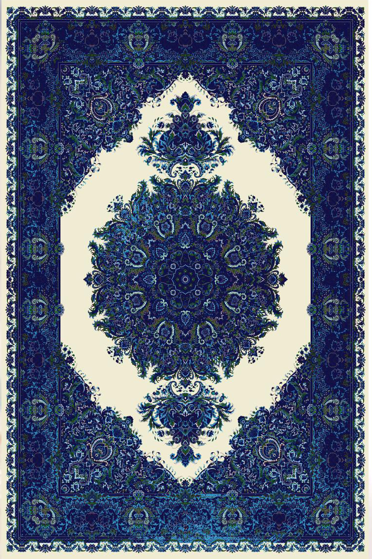 فرش ماشینی پشم ابریشم 1200 شانه زمینه کرم موزی کد3237