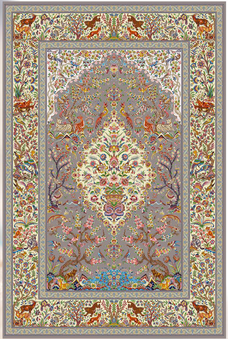 فرش ماشینی پشم ابریشم 1200 شانه زمینه خاکستری کد3240