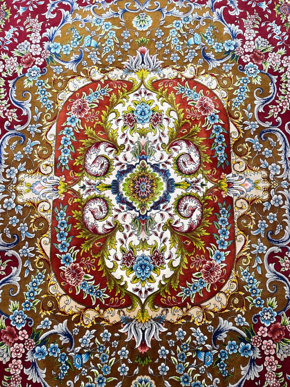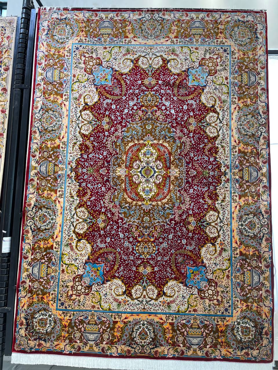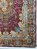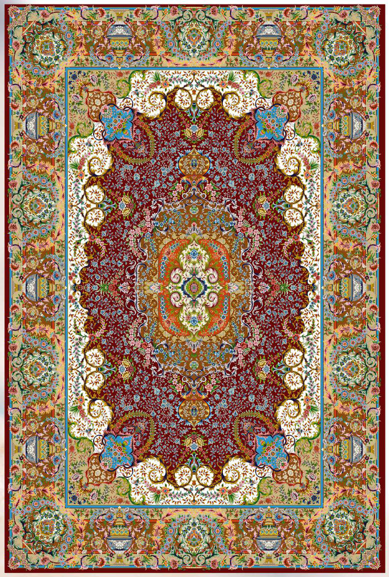 فرش ماشینی پشم ابریشم 1200 شانه زمینه زرشکی کد3241