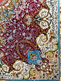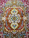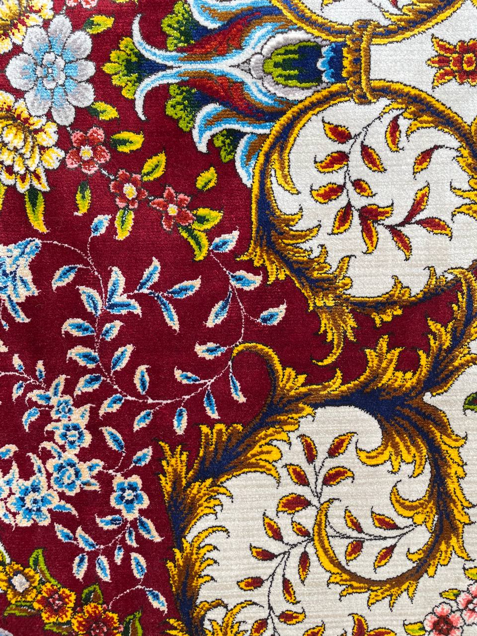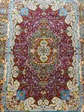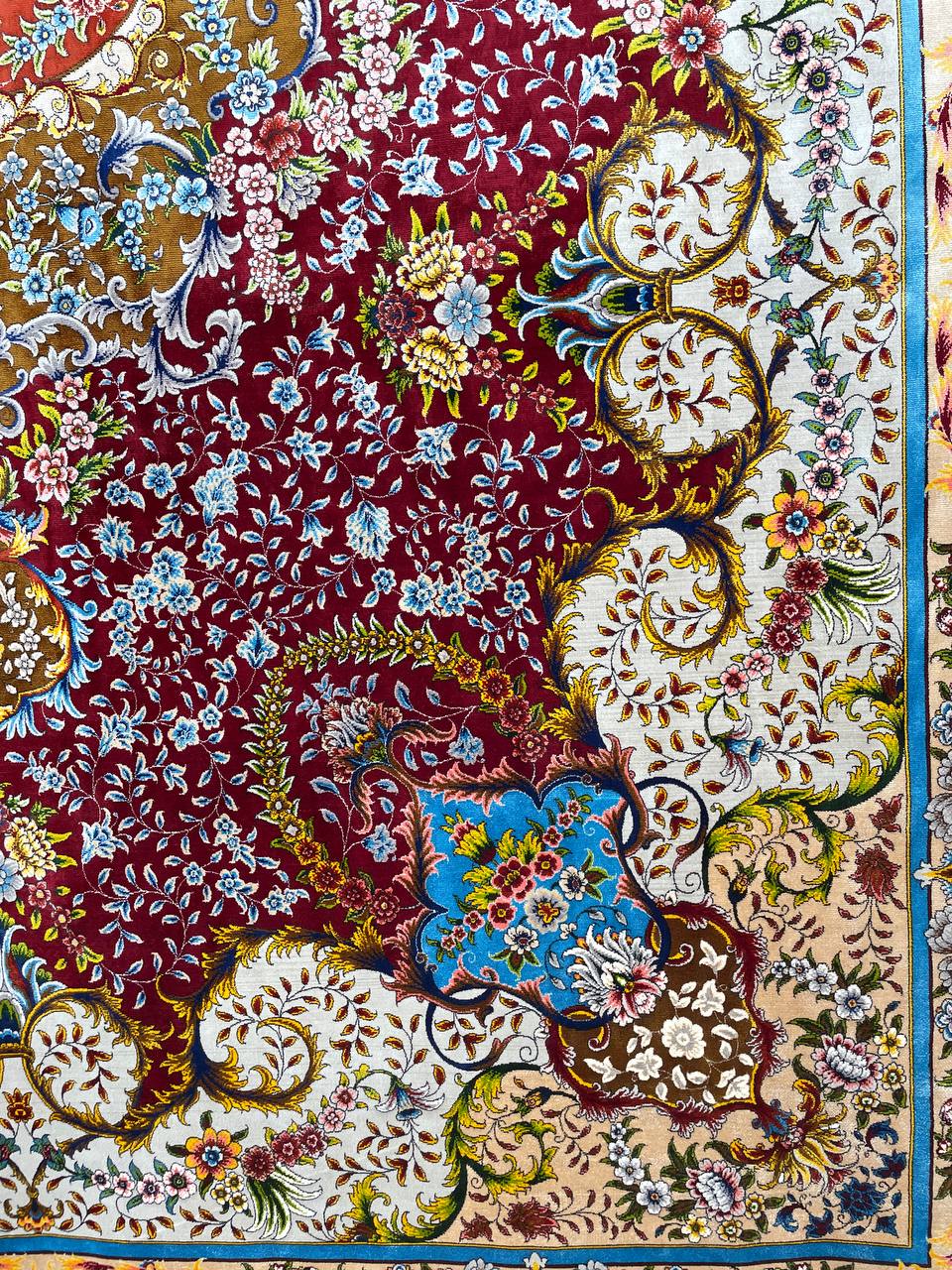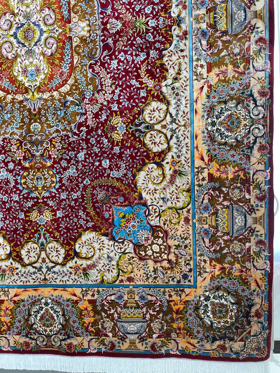 فرش ماشینی پشم ابریشم 1200 شانه زمینه زرشکی کد3241