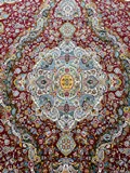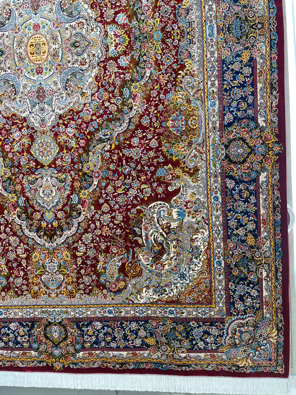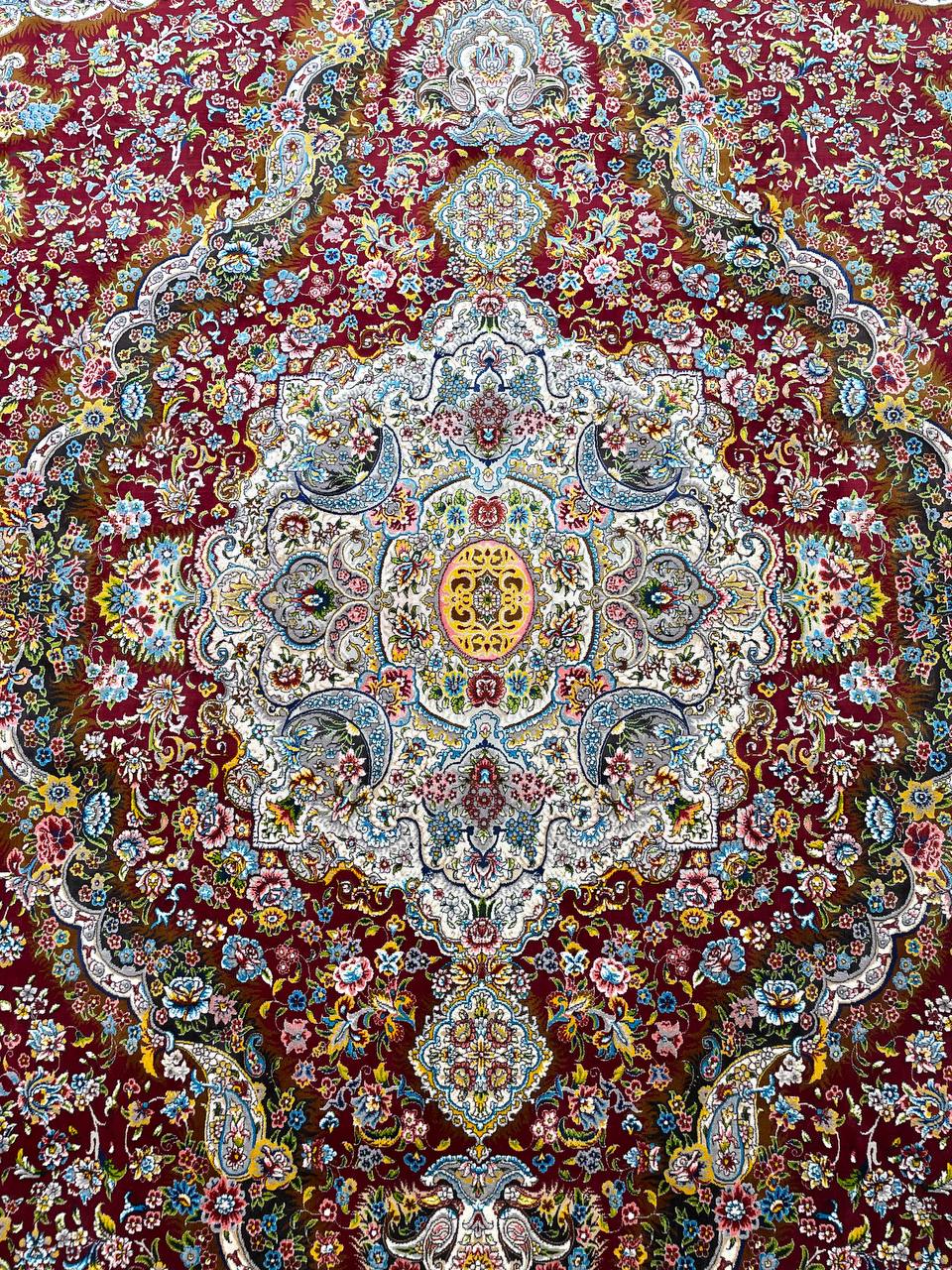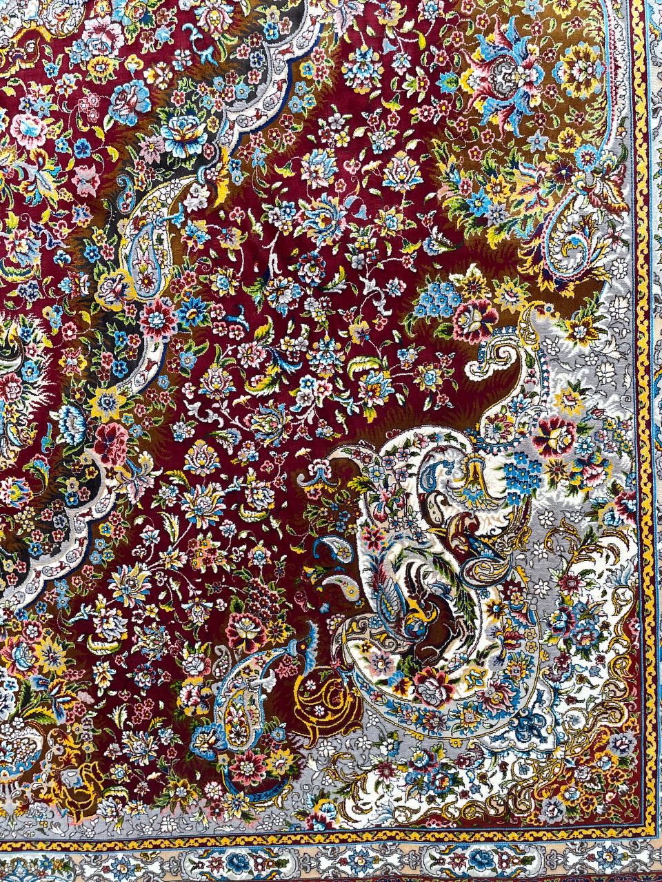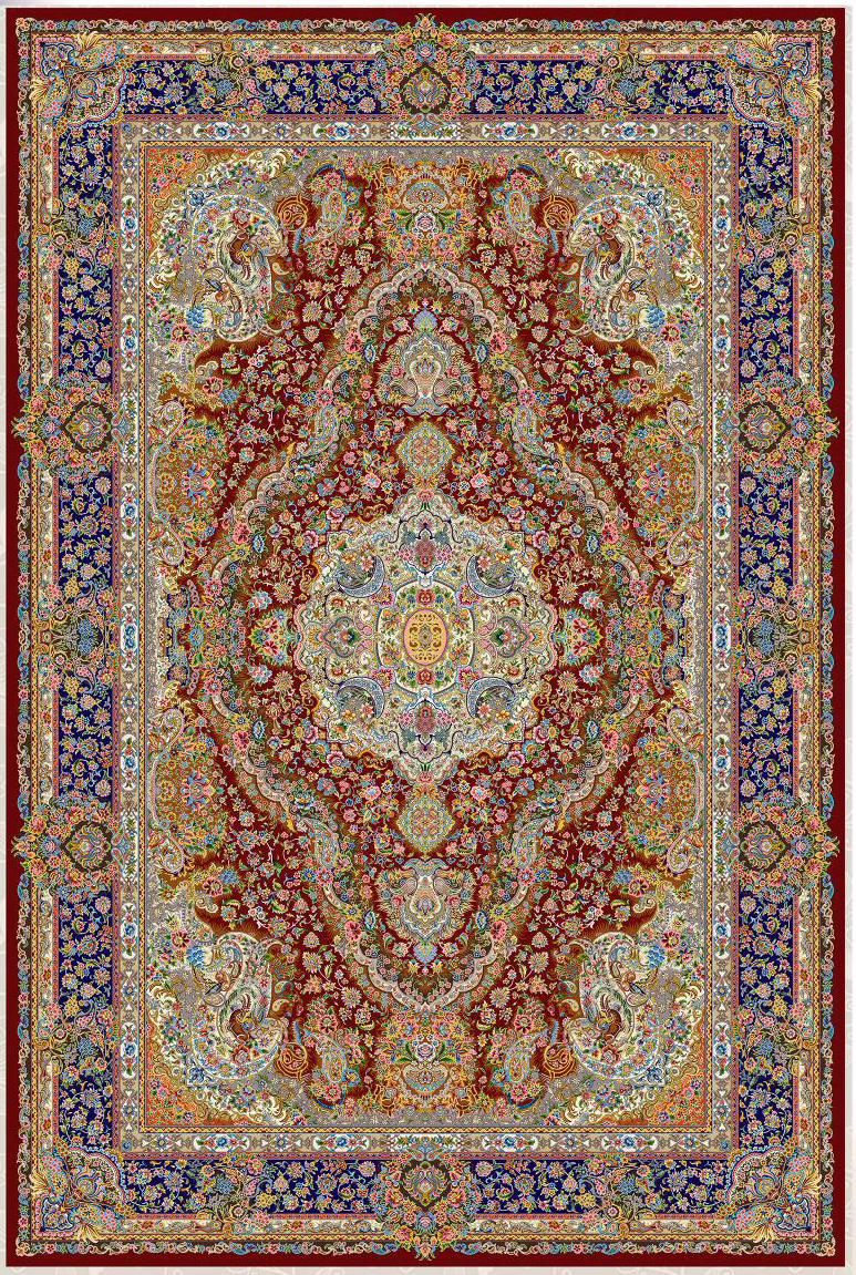 فرش ماشینی پشم ابریشم 1200 شانه زمینه زرشکی کد3213
