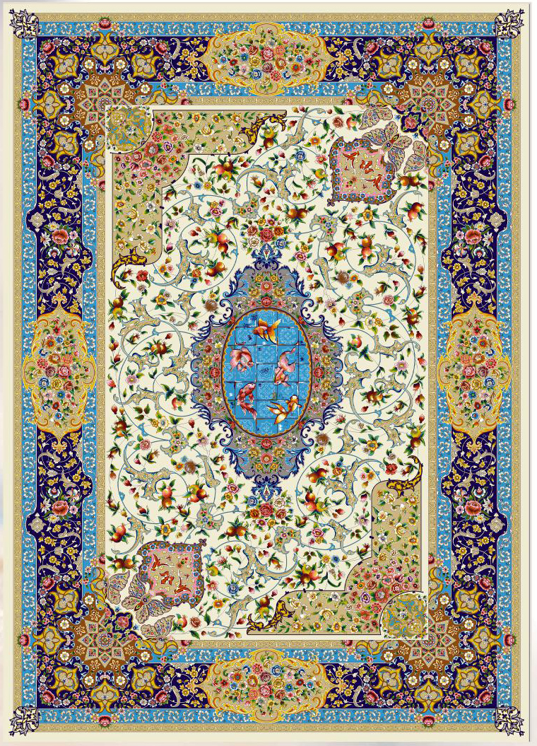 فرش ماشینی پشم ابریشم 1200 شانه زمینه کرم موزی کد3243