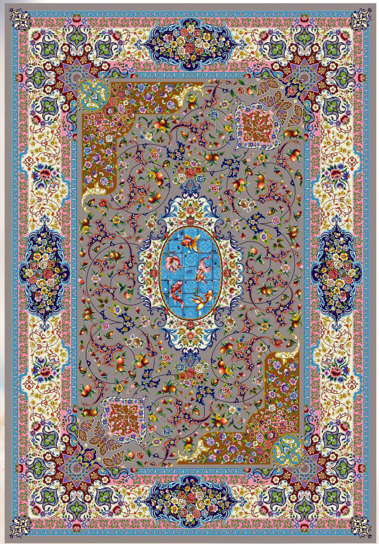 فرش ماشینی پشم ابریشم 1200 شانه زمینه خاکستری کد3243