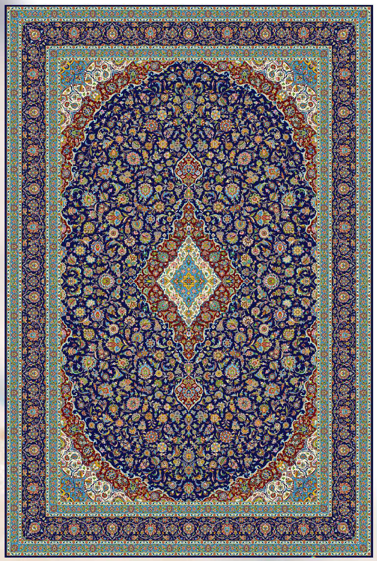 فرش ماشینی پشم ابریشم 1200 شانه زمینه آبی کاربنی کد3246