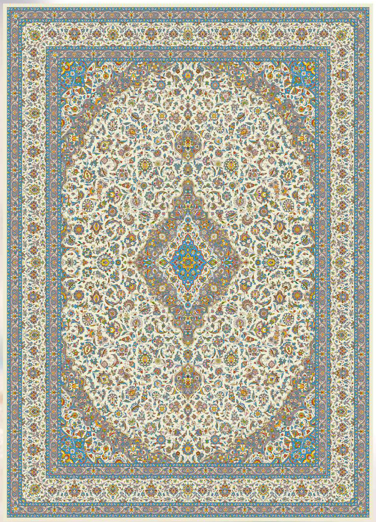 فرش ماشینی پشم ابریشم 1200 شانه زمینه کرم موزی کد3246