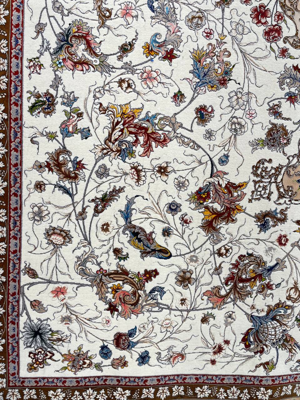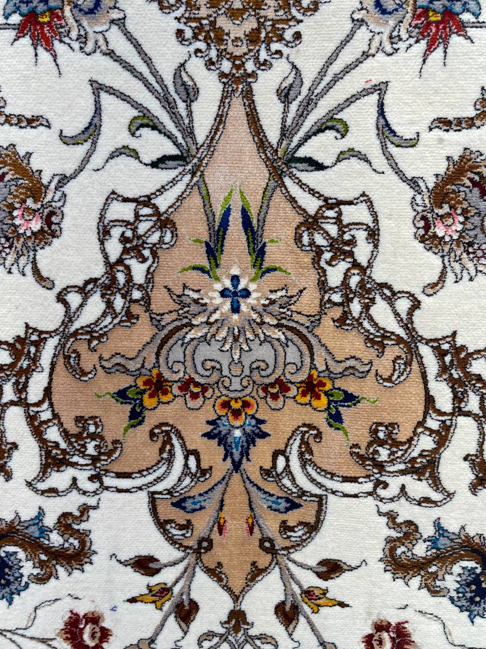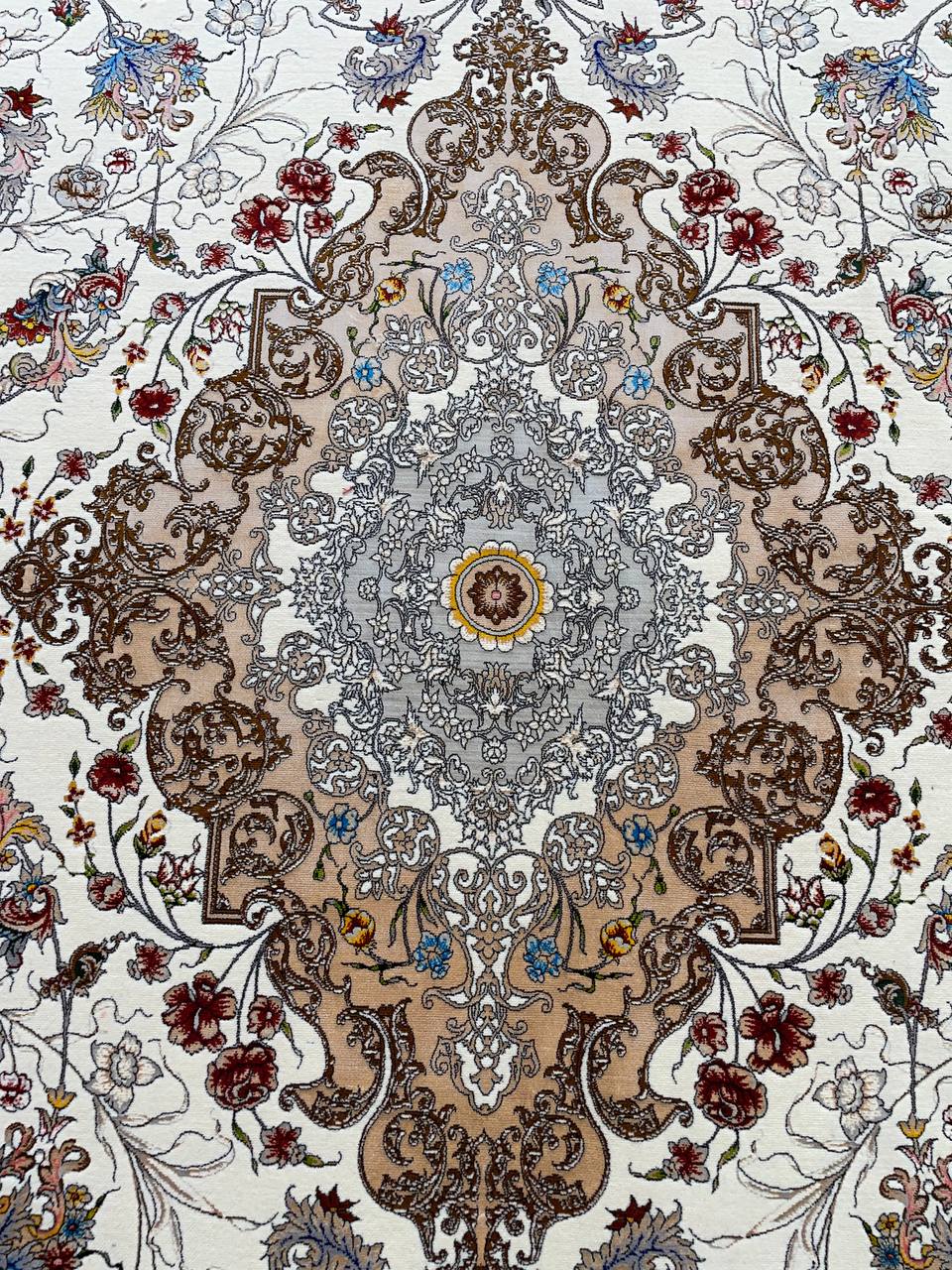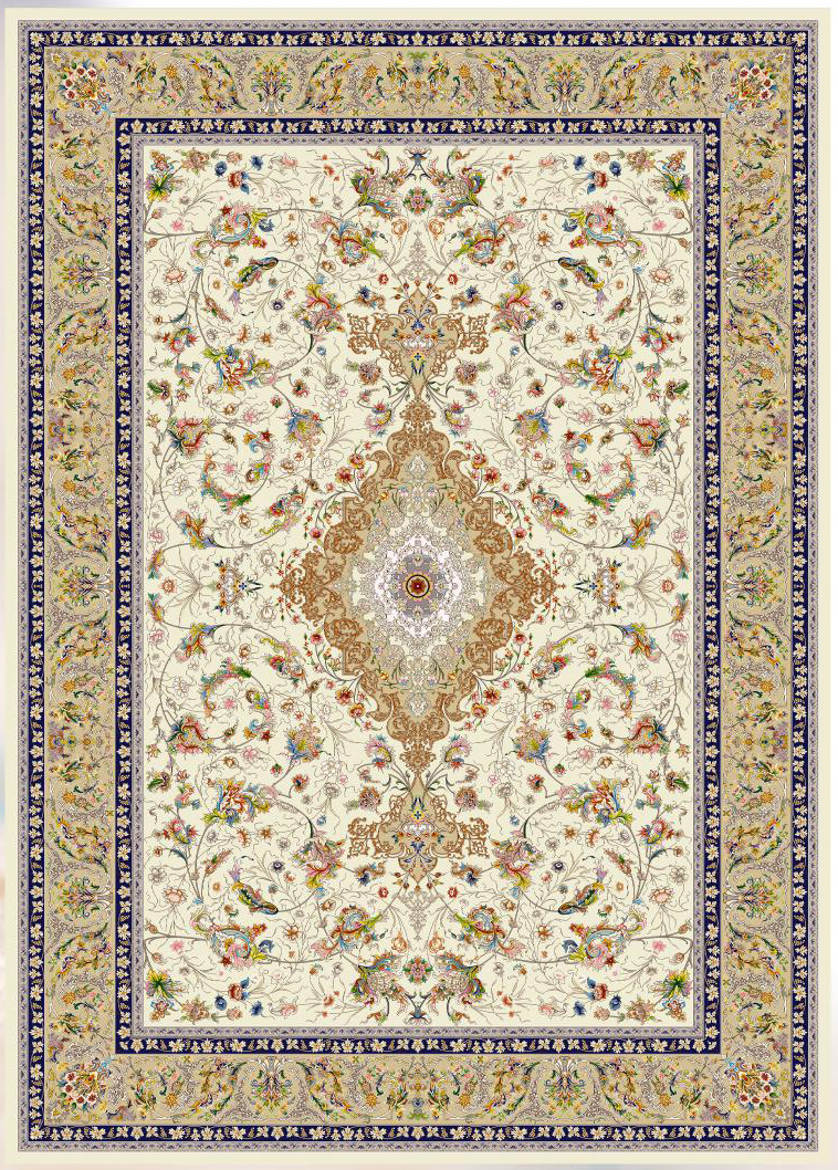 فرش ماشینی پشم ابریشم 1200 شانه زمینه کرم کد3252