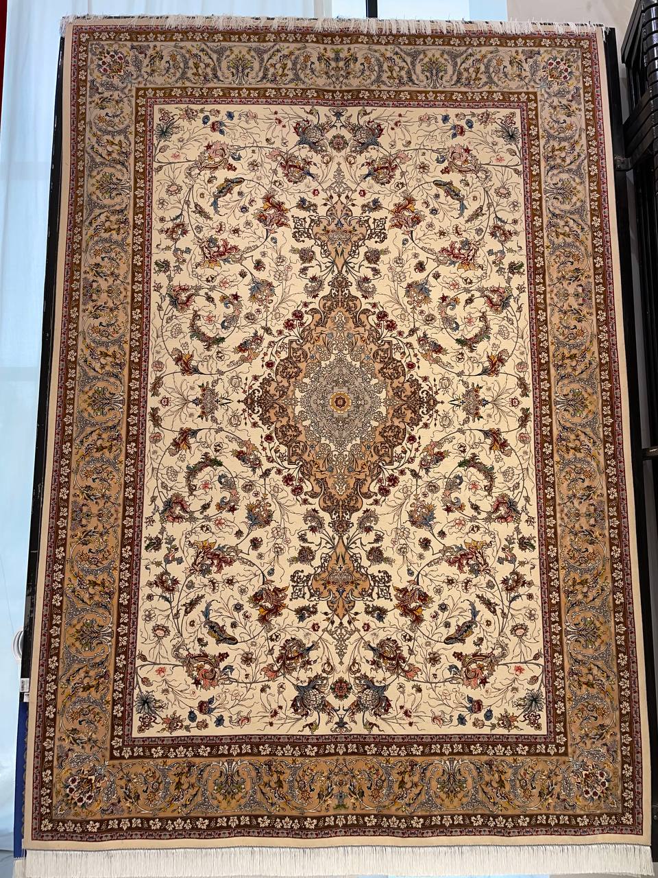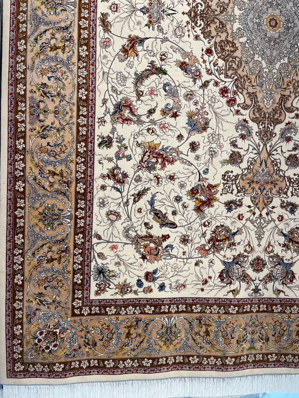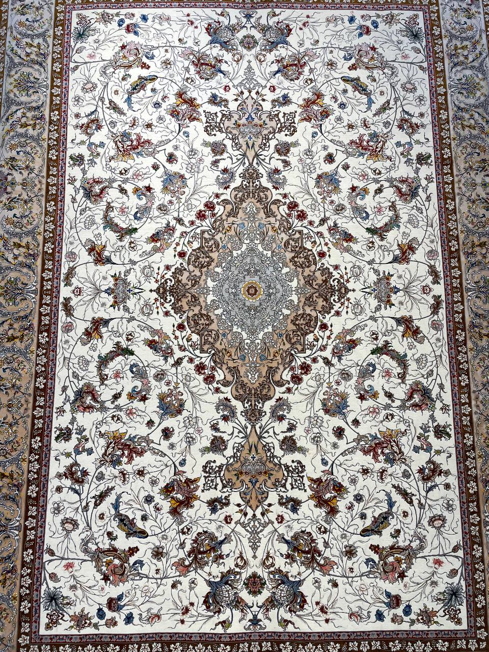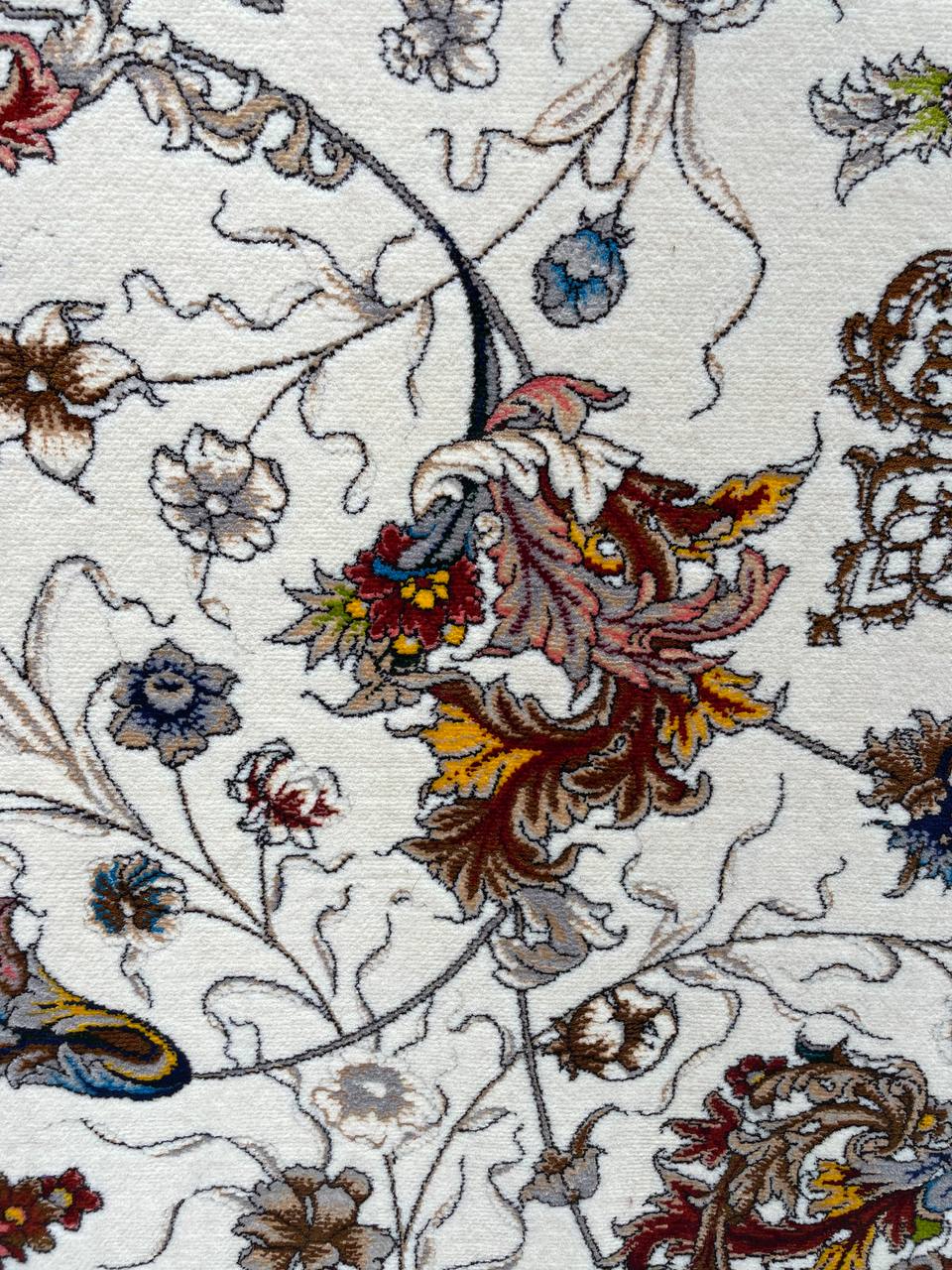 فرش ماشینی پشم ابریشم 1200 شانه زمینه کرم کد3252