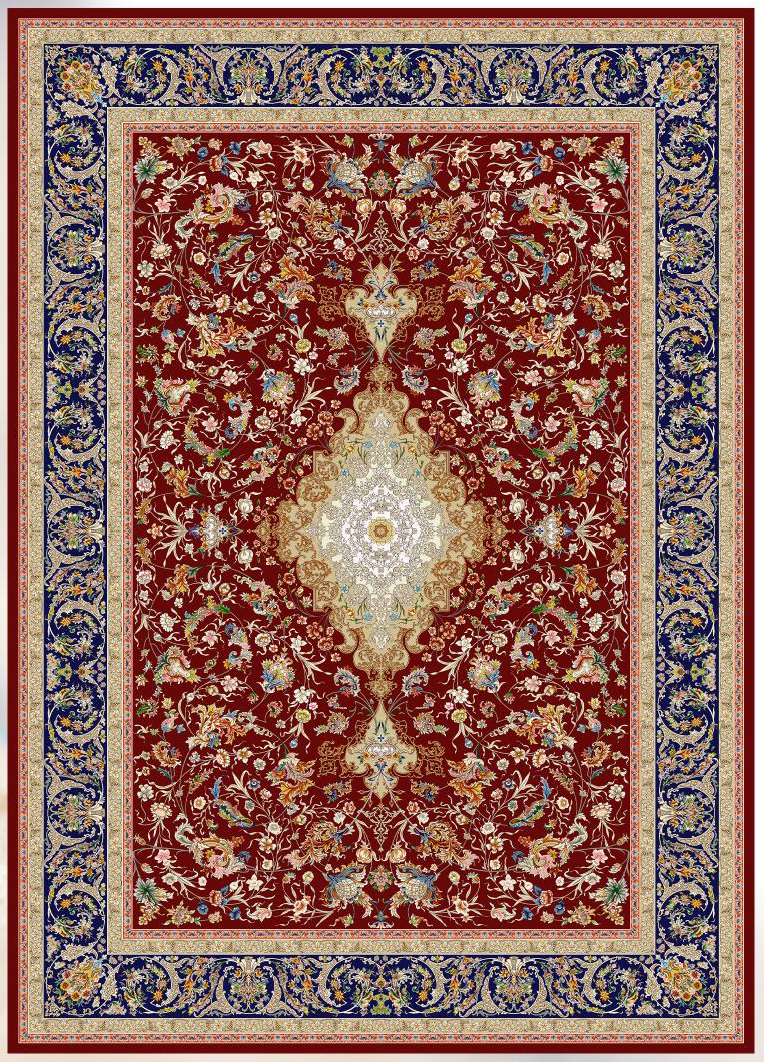 فرش ماشینی پشم ابریشم 1200 شانه زمینه زرشکی کد3252