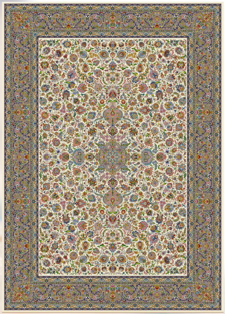 فرش ماشینی پشم ابریشم 1200 شانه زمینه کرم کد3245