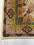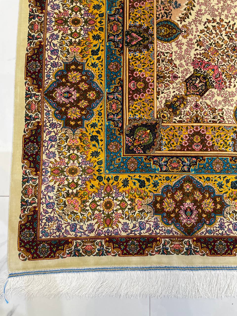 فرش ماشینی ابریشم 1500 شانه کاشان زمینه کرم کد5516