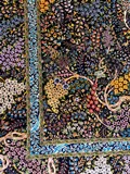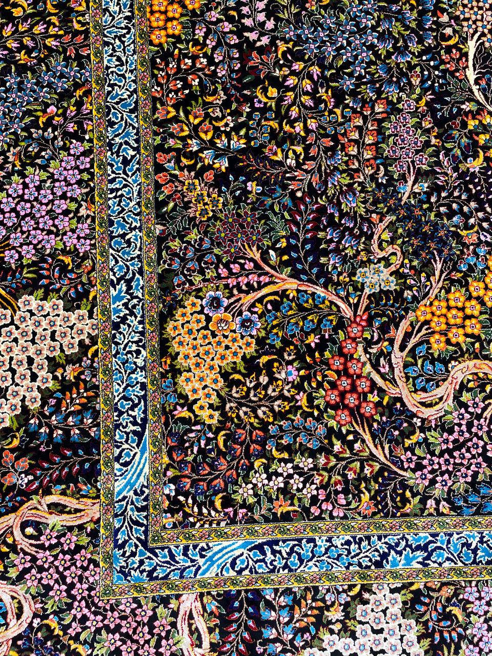 فرش ماشینی ابریشم 1500 شانه کاشان زمینه مشکی کد5591